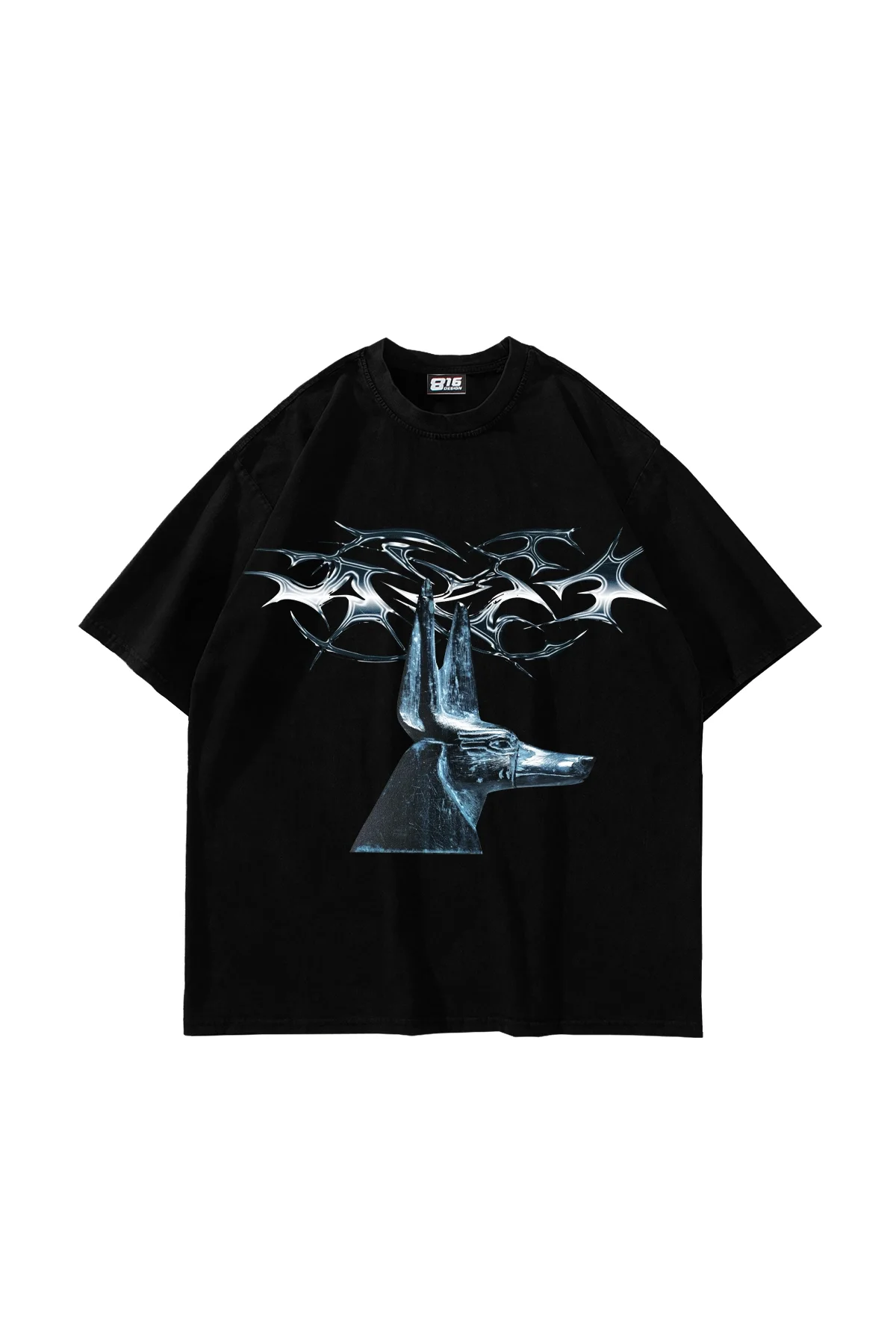 Holographic Baskılı Oversize Unisex Siyah Tshirt
