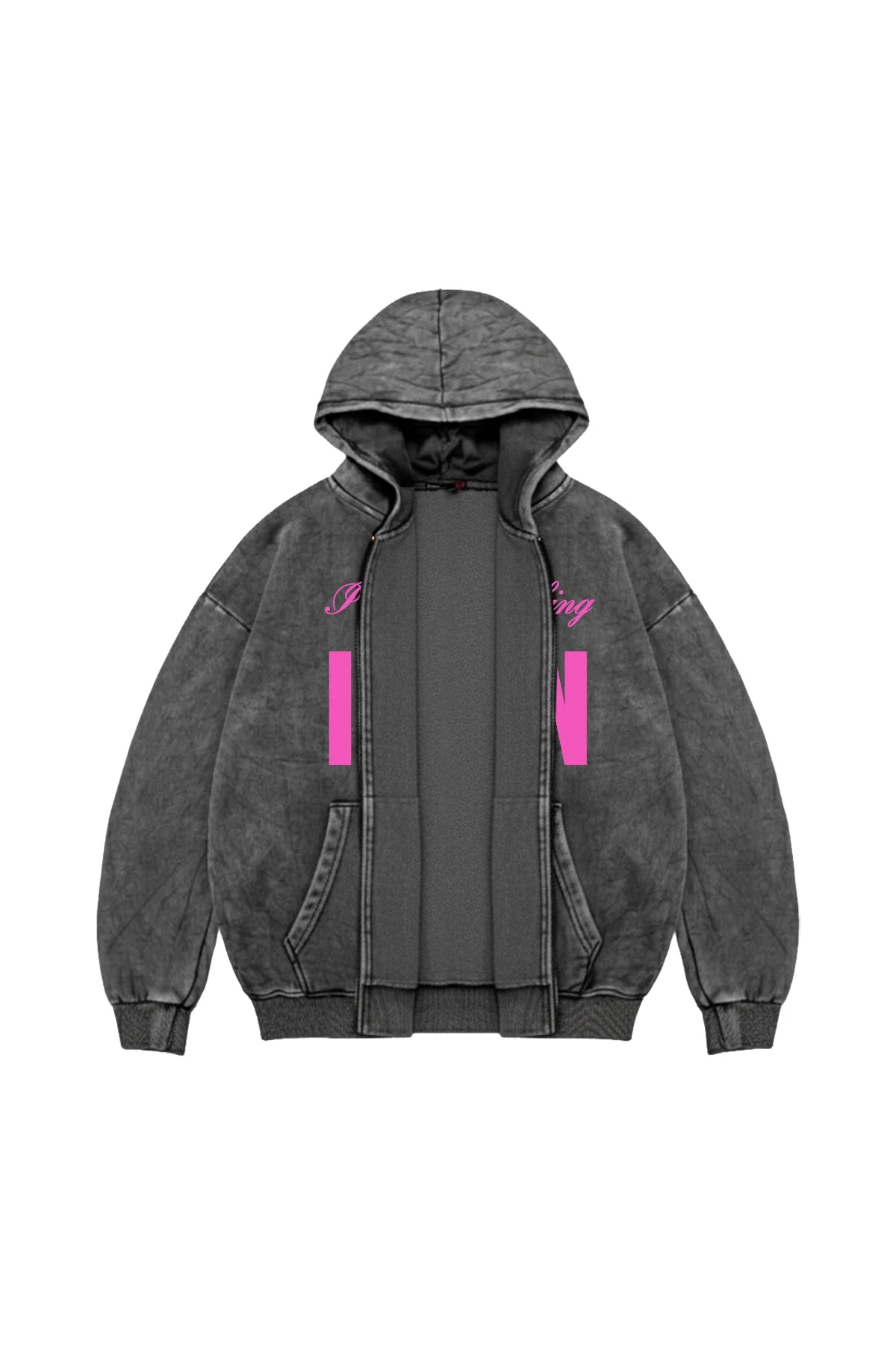 ICON Baskılı Fermuarlı Zip Kapüşonlu Unisex Yıkamalı Siyah Sweatshirt