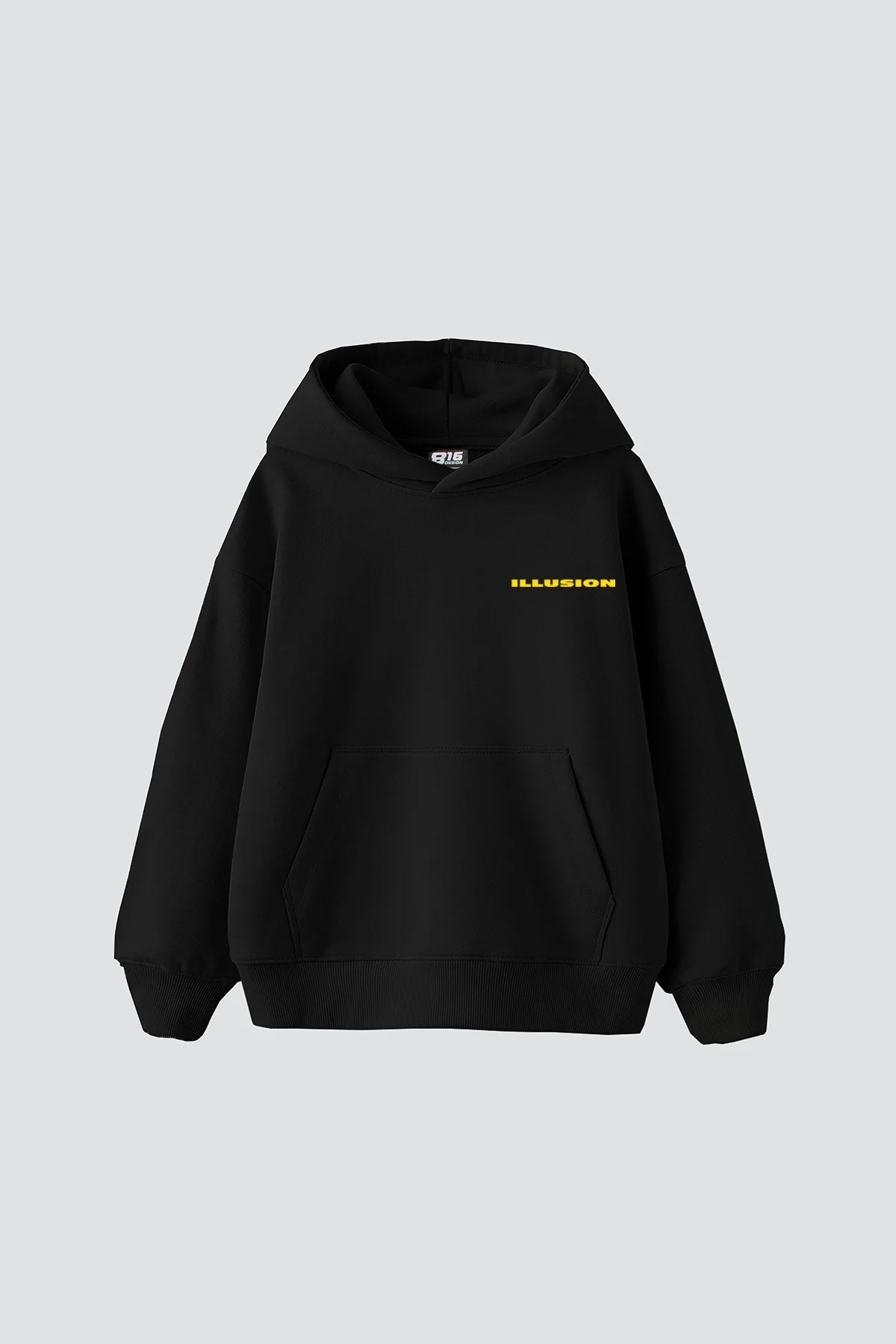 Illusion Baskılı Oversize Unisex Siyah Hoodie