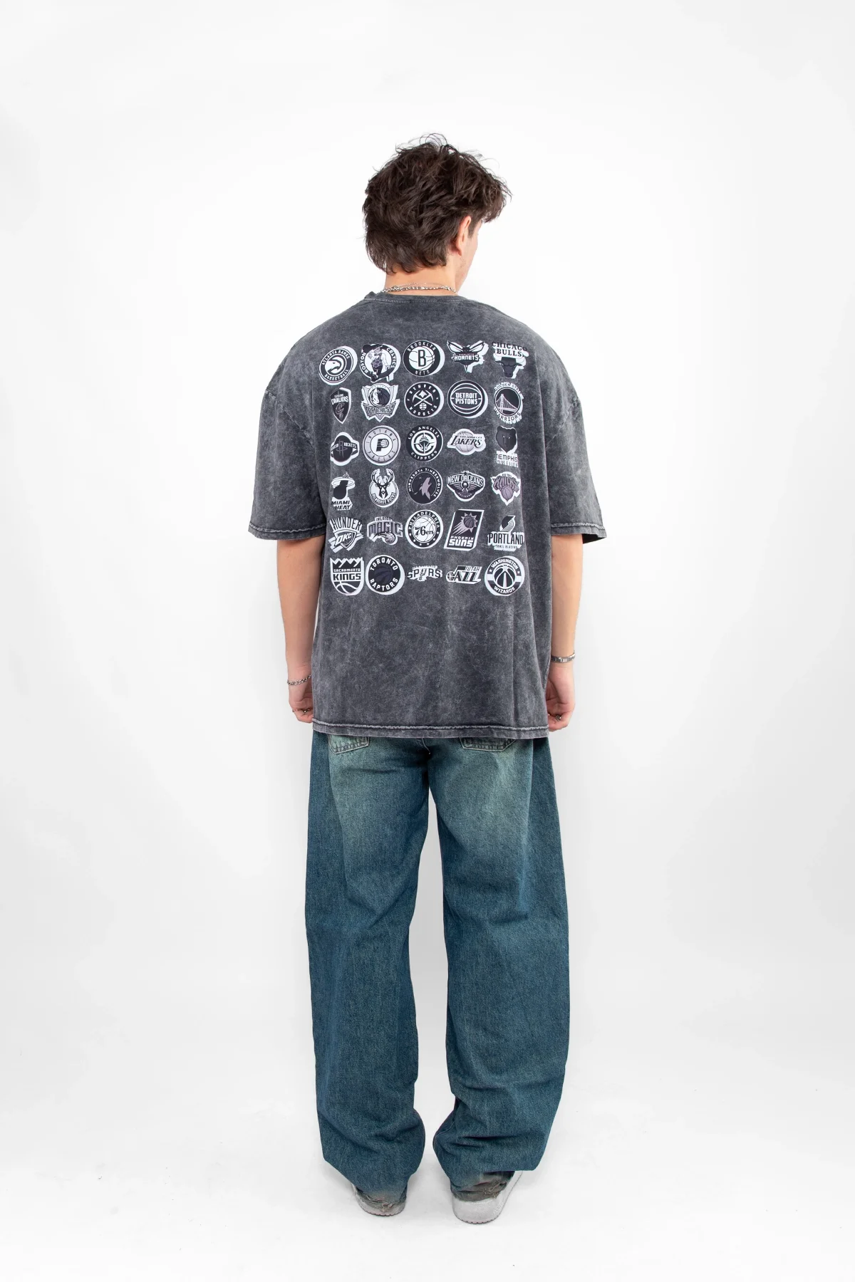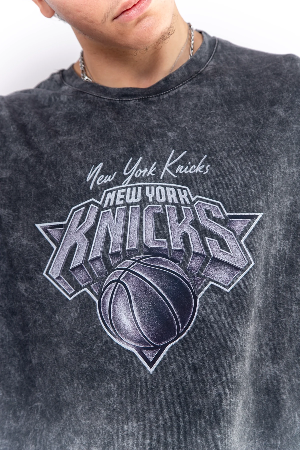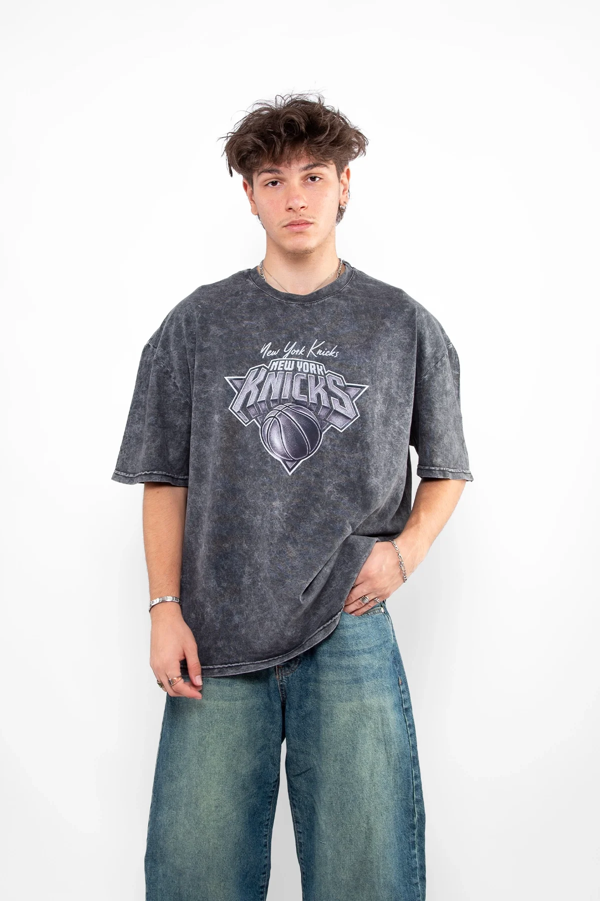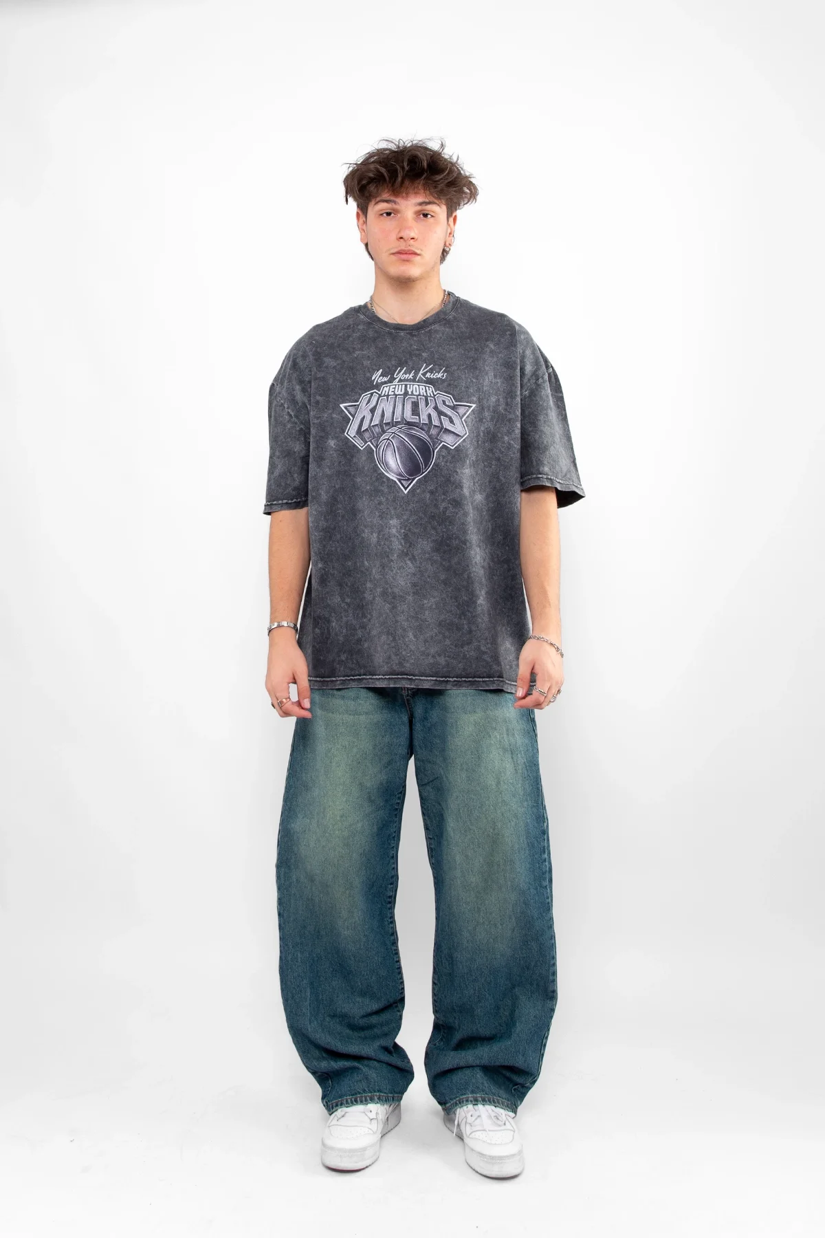 Knicks Baskılı Oversize Unisex Yıkamalı Siyah T-Shirt