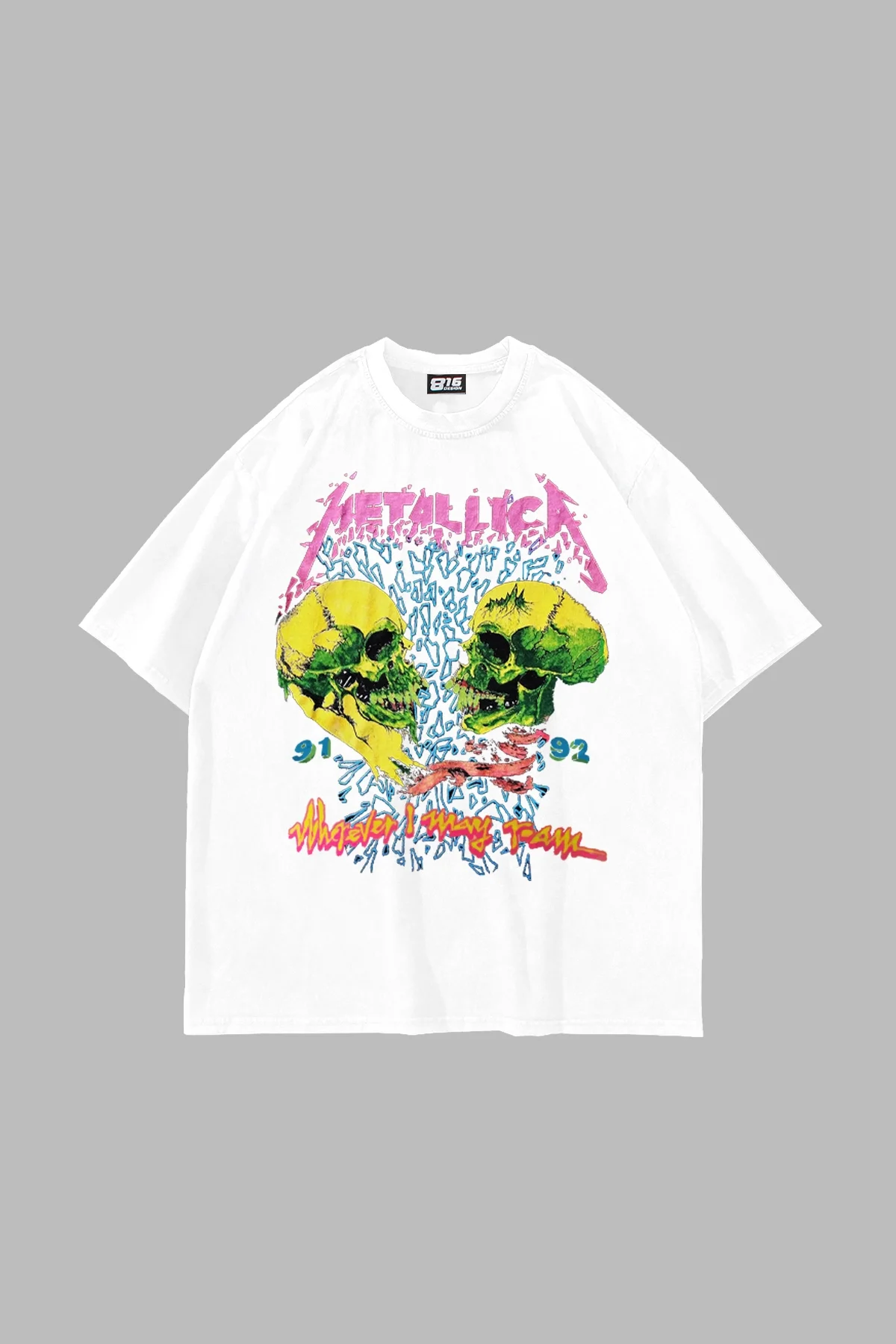 Metallica Skull Baskılı 24/1 Oversize Unisex Beyaz T-shirt