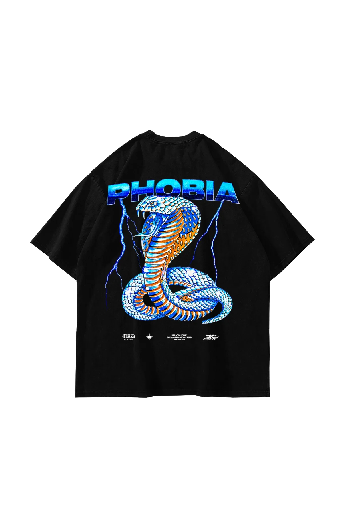 Phobia Sırt Baskılı Siyah Unisex Oversize Tshirt
