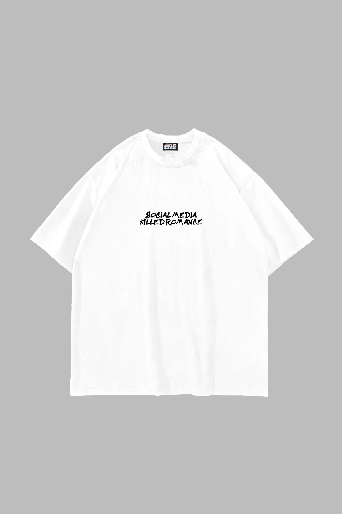 Killed Romance Baskılı Oversize Unisex Beyaz Tshirt