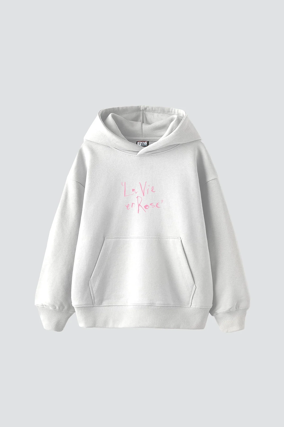 La Vie Er Rose Baskılı Oversize Unisex Beyaz Hoodie