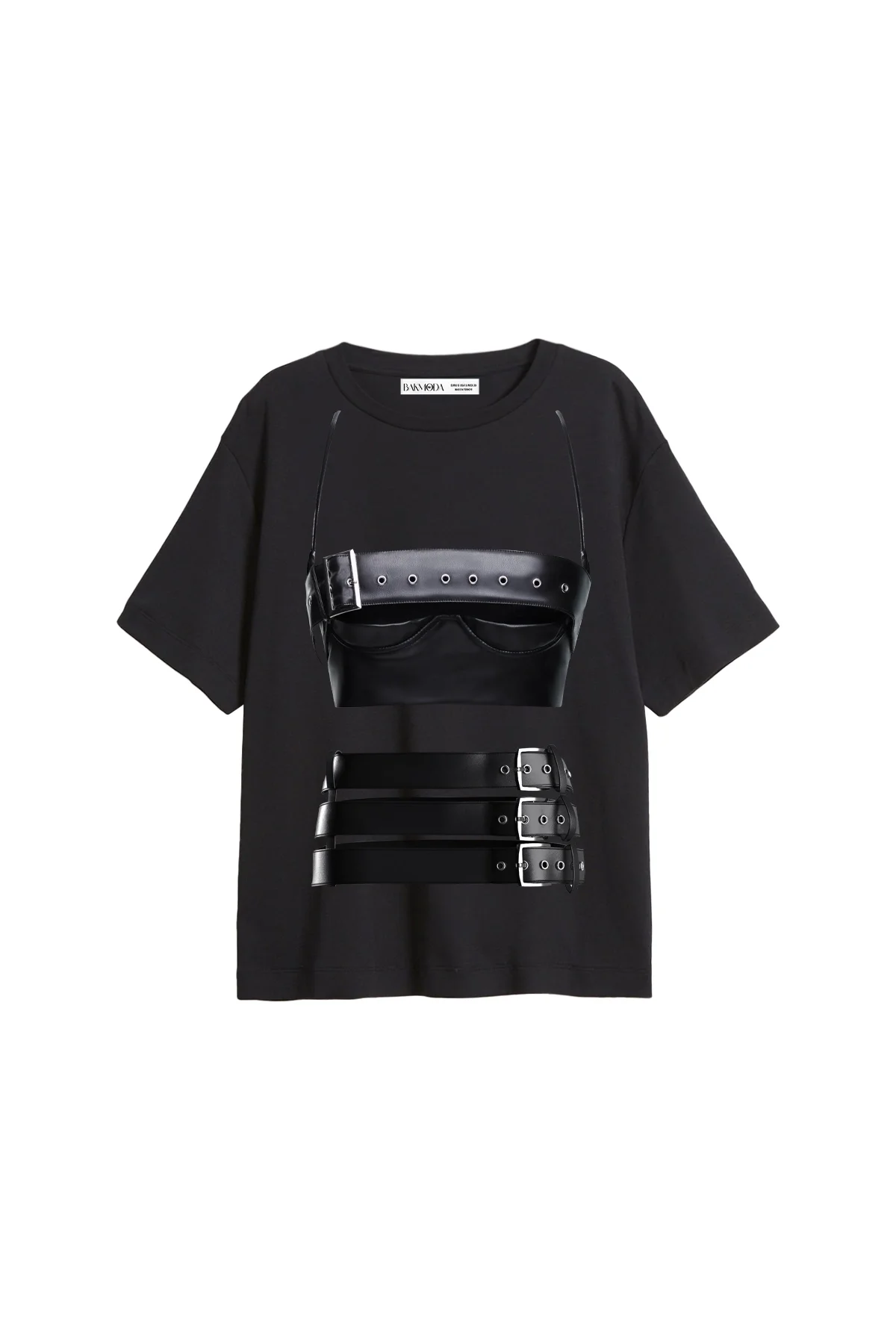 Leather Skirt Baskılı Relaxed Fit Siyah Kadın Tshirt