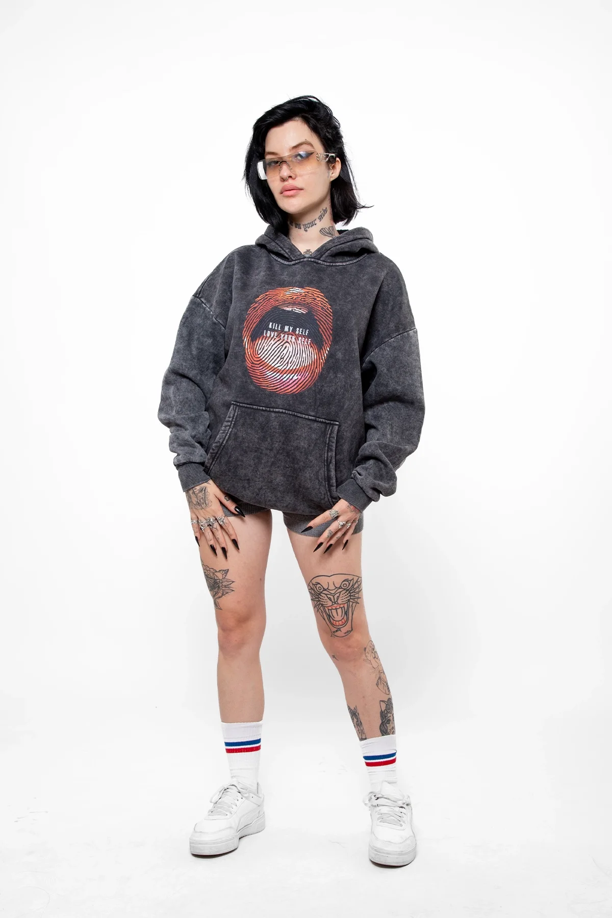 Siyah rengin sade şıklığı ve Love Your Self baskısının ışıltısı, şıklığınızı her ortamda öne çıkarır. Hem jean pantolonlar hem de rahat şortlarla kombinlenebilir. Bu hoodie, sokak modasında tarzınızı öne çıkarmak için mükemmel bir tercih.