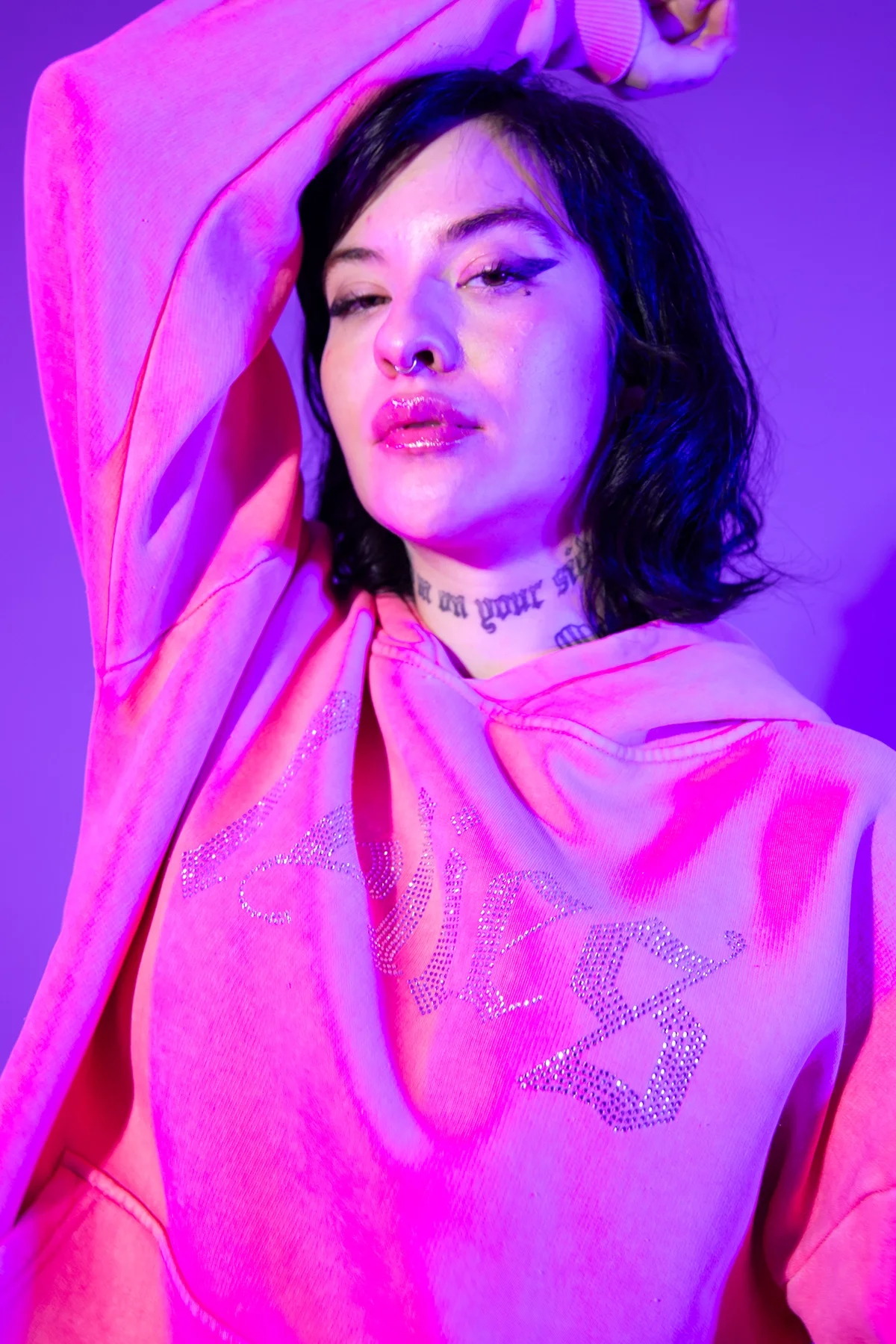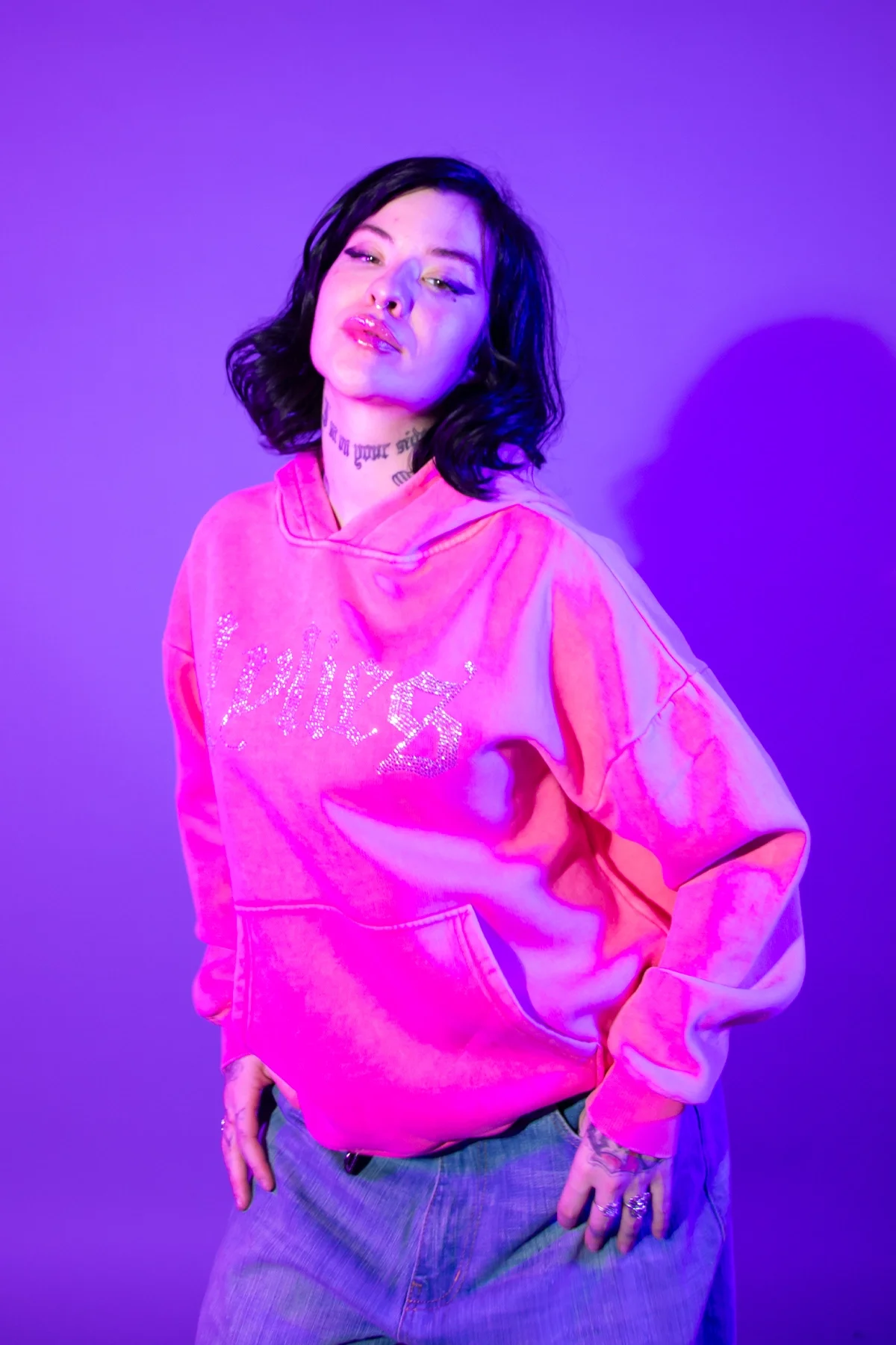 Parıltılı bir dokunuşla sade şıklığı harmanlayan Lylies Taş Baskılı Oversize Unisex Yıkamalı Pembe Hoodie, sokak stilinde iddialı bir duruş yaratır. Hafif yıkamalı görünümü ve ön yüzeyde yer alan taş detaylı “Lylies” baskısı, klasik beyaz tonuna göz alıcı bir hava katar.