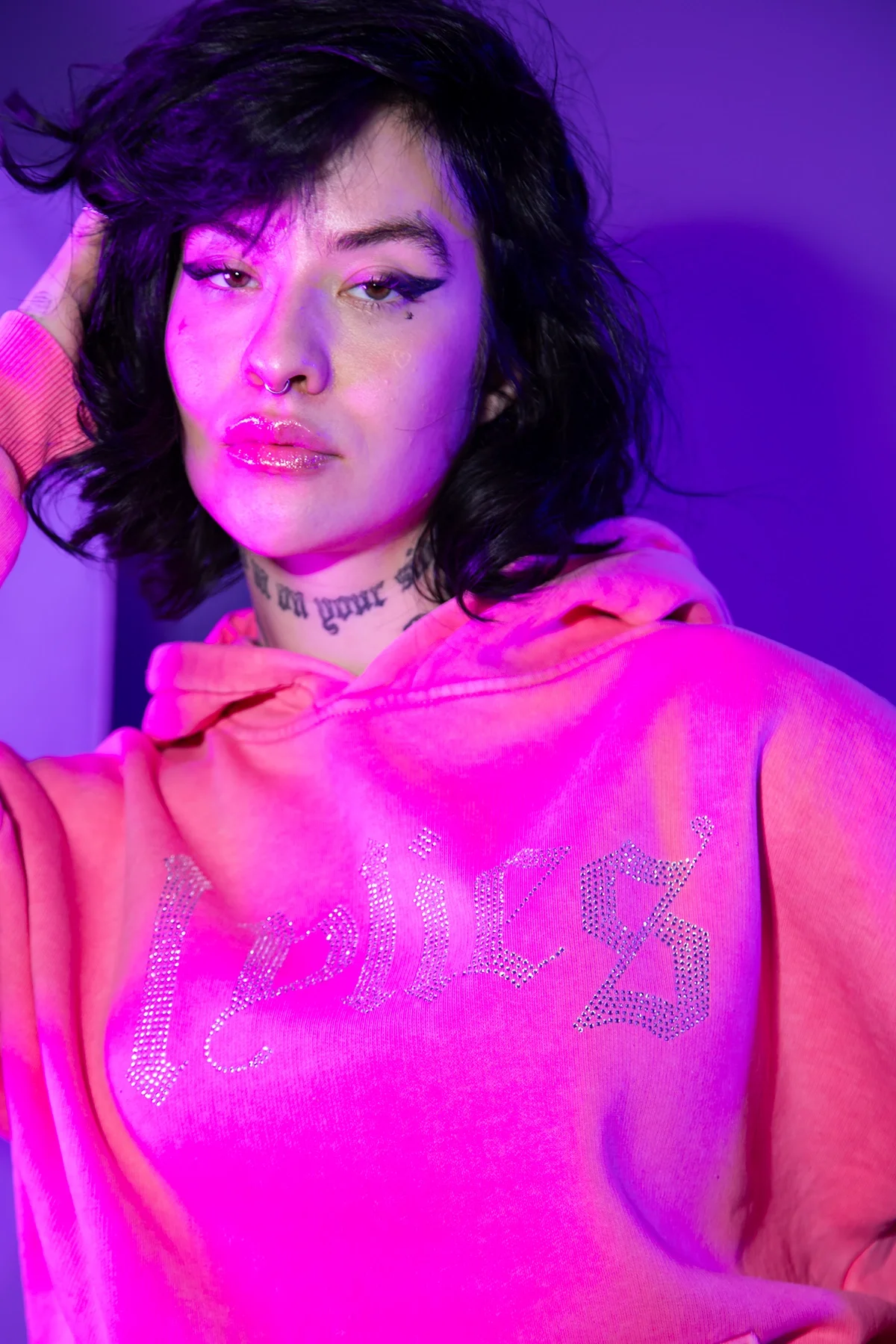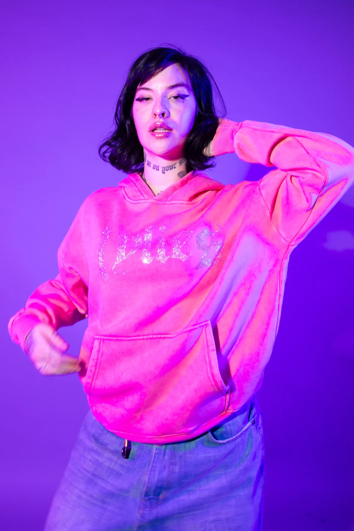 Lylies Taş Baskılı Oversize Unisex Yıkamalı Pembe Hoodie
