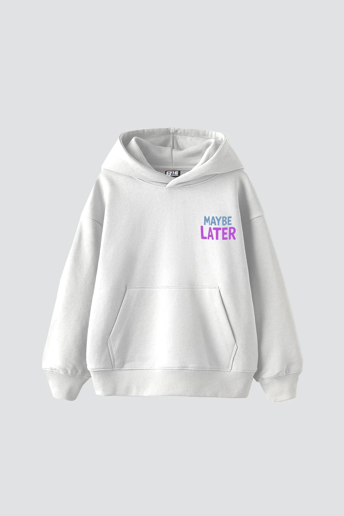 Maybe Later Baskılı Hoodie, oversize kesimi ve zamansız Beyaz rengiyle hem konforu hem tarzı bir araya getiriyor. Göğüs kısmındaki yazısı ve baskı detayıyla enerjik ve özgün bir görünüm sunar.