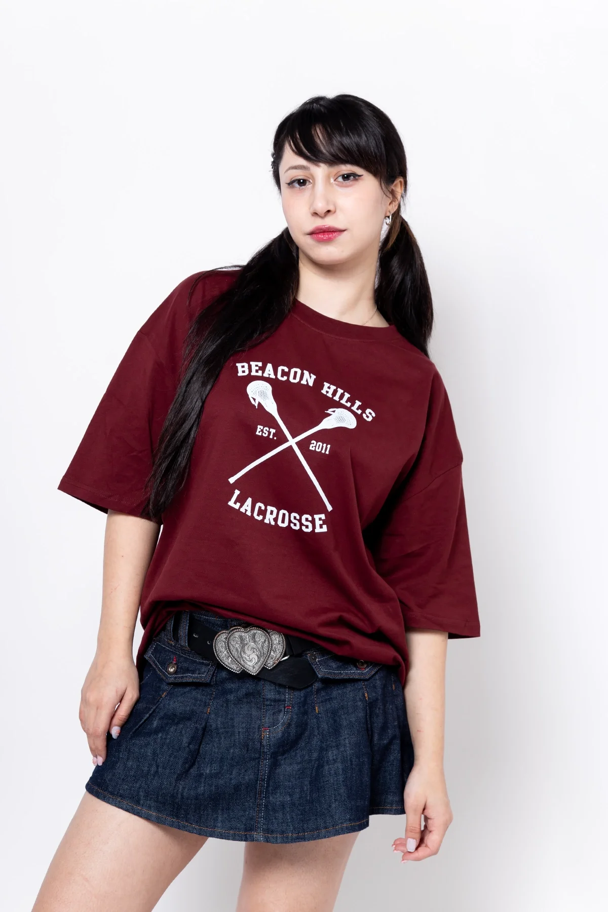 Mccall Baskılı Oversize Unisex Bordo Tshirt