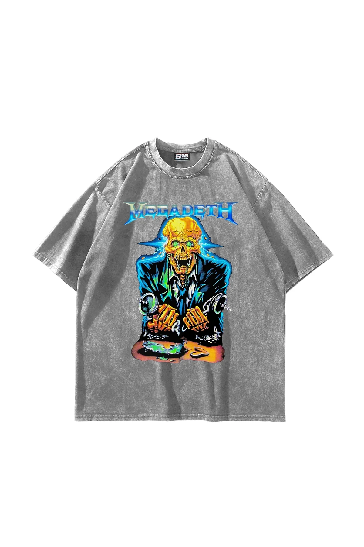Megadeth Electric Baskılı Yıkamalı Beyaz Oversize Tshirt