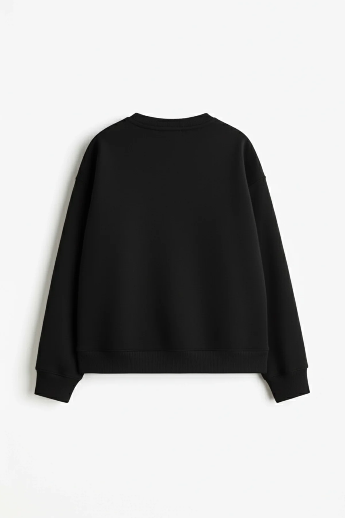 Minimalist tasarımıyla öne çıkan Merry Chaos baskılı bu siyah sweatshirt, sade şıklığa ince bir dokunuş katıyor. Relaxed fit kesimiyle konforlu bir kullanım sunarken, ön kısmındaki sanatsal siluet detayı ile fark yaratıyor. Hem özgün hem de modern bir stil arayan kadınlar için ideal.
