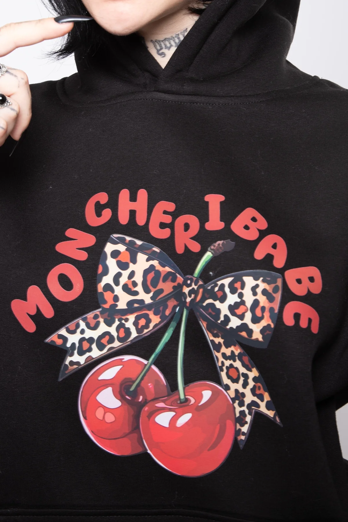 Mon Cherie Baskılı Oversize Unisex Siyah Hoodie