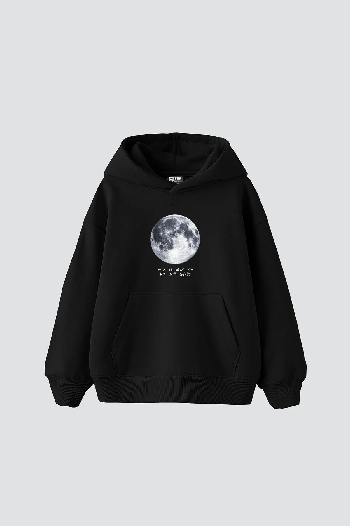 Moon İs Alone Baskılı Hoodie, oversize kesimi ve zamansız Siyah rengiyle hem konforu hem tarzı bir araya getiriyor. Göğüs kısmındaki yazısı ve baskı detayıyla enerjik ve özgün bir görünüm sunar.