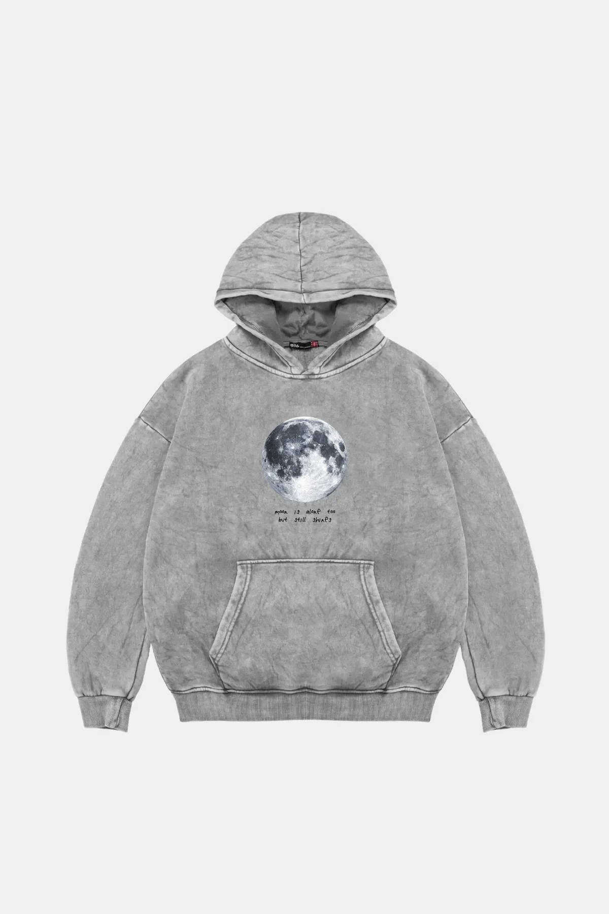 Moon İs Alone Baskılı Hoodie, oversize kesimi ve zamansız Yıkamalı Beyaz rengiyle hem konforu hem tarzı bir araya getiriyor. Göğüs kısmındaki yazısı ve baskı detayıyla enerjik ve özgün bir görünüm sunar.