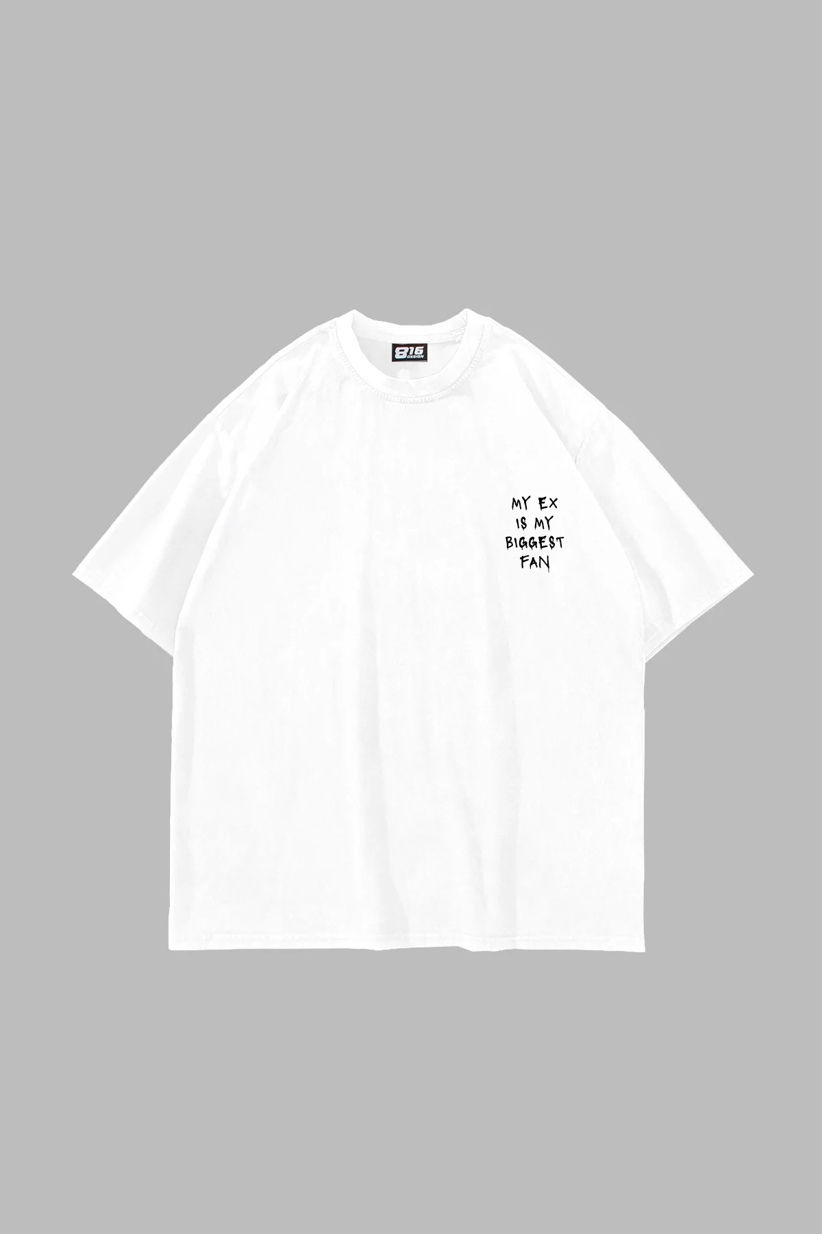 My Ex Is My Bıggest Fan Baskılı Oversize Unisex Beyaz Tshirt