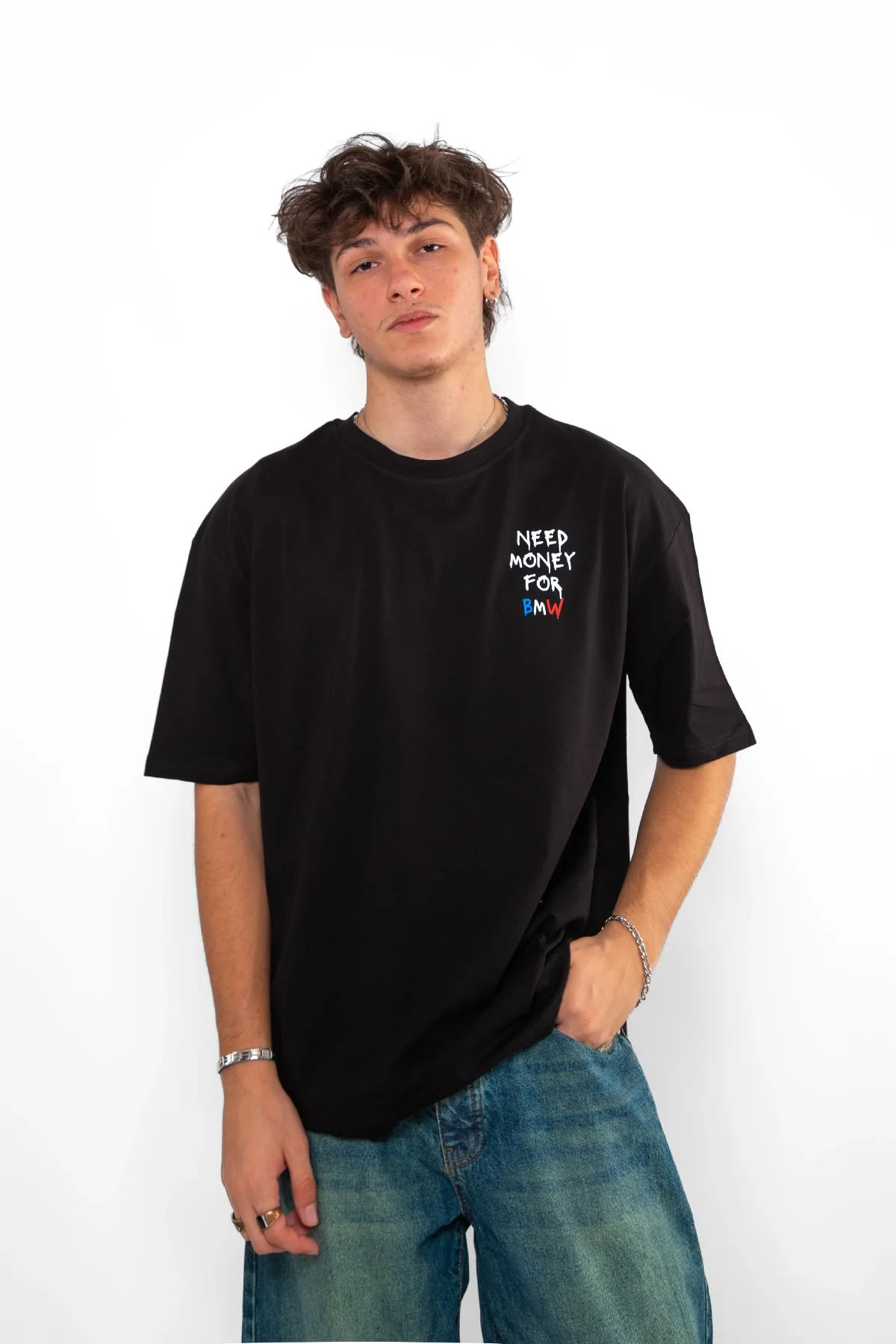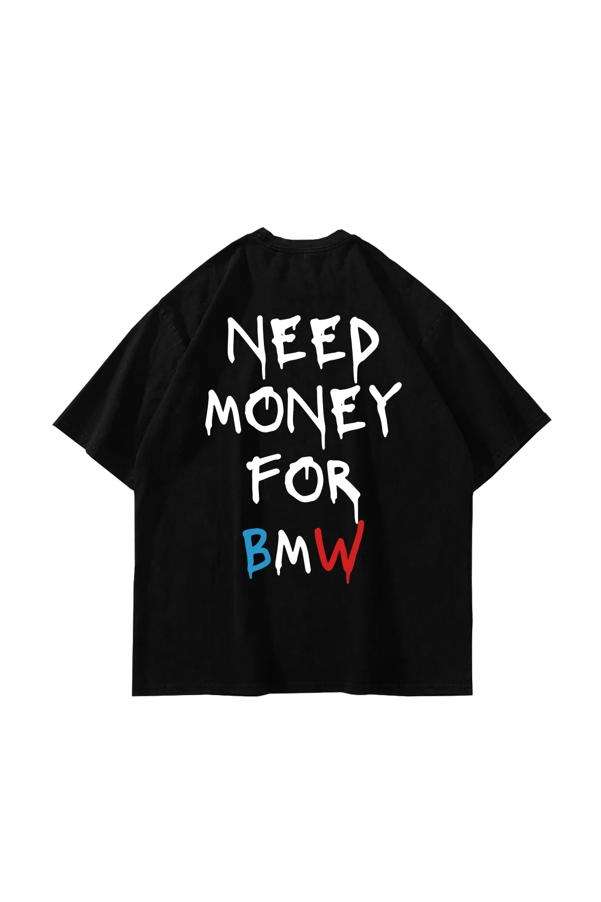 Sokak stiline asi ve özgün bir dokunuş ekleyin! Need Money For Bmw baskılı Siyah oversize unisex t-shirt, enerjik tasarımı ve rahat kesimiyle her ortamda dikkat çeker. Hem erkekler hem de kadınlar için ideal olan bu t-shirt, cesur bir tarz arayanların tercihi olacak.