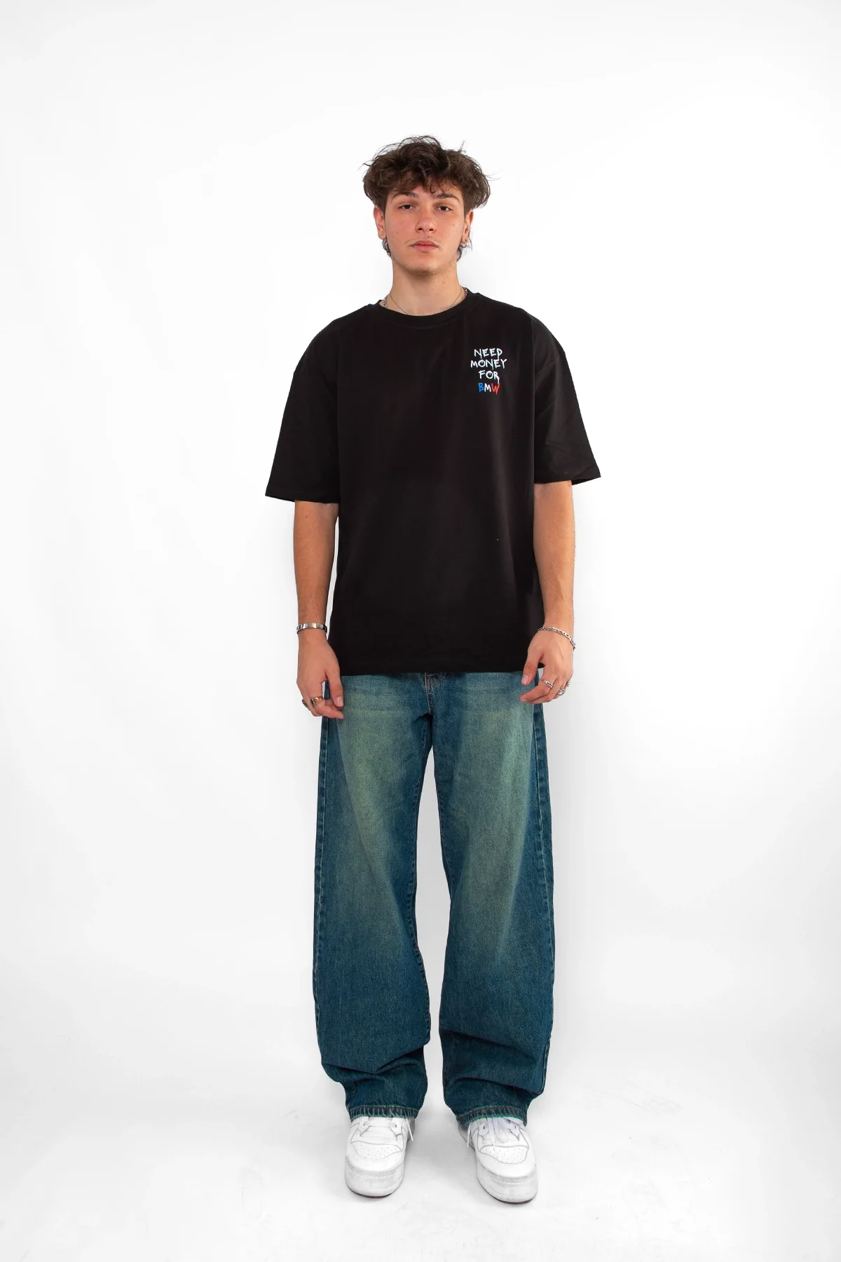 Yumuşak pamuk kumaşı, gün boyu rahatlık ve ferahlık sağlar. Özel kumaş dokusu ise t-shirt’e kendine özgü bir hava katarken, oversize kesimi vücuda oturmadan özgür bir hareket imkanı sunar. Need Money For Bmw baskısı, sokak modasına asi bir hava katıyor.