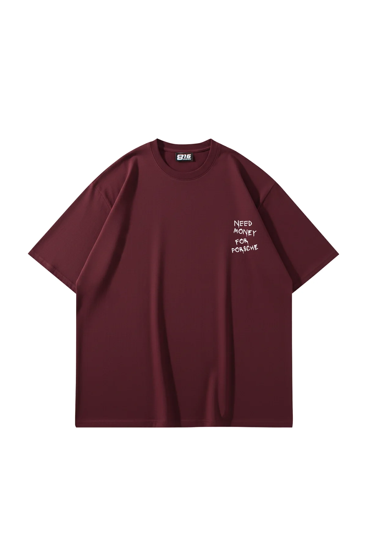 Need Money For Porsche Baskılı Oversize Unisex Bordo T-Shirt