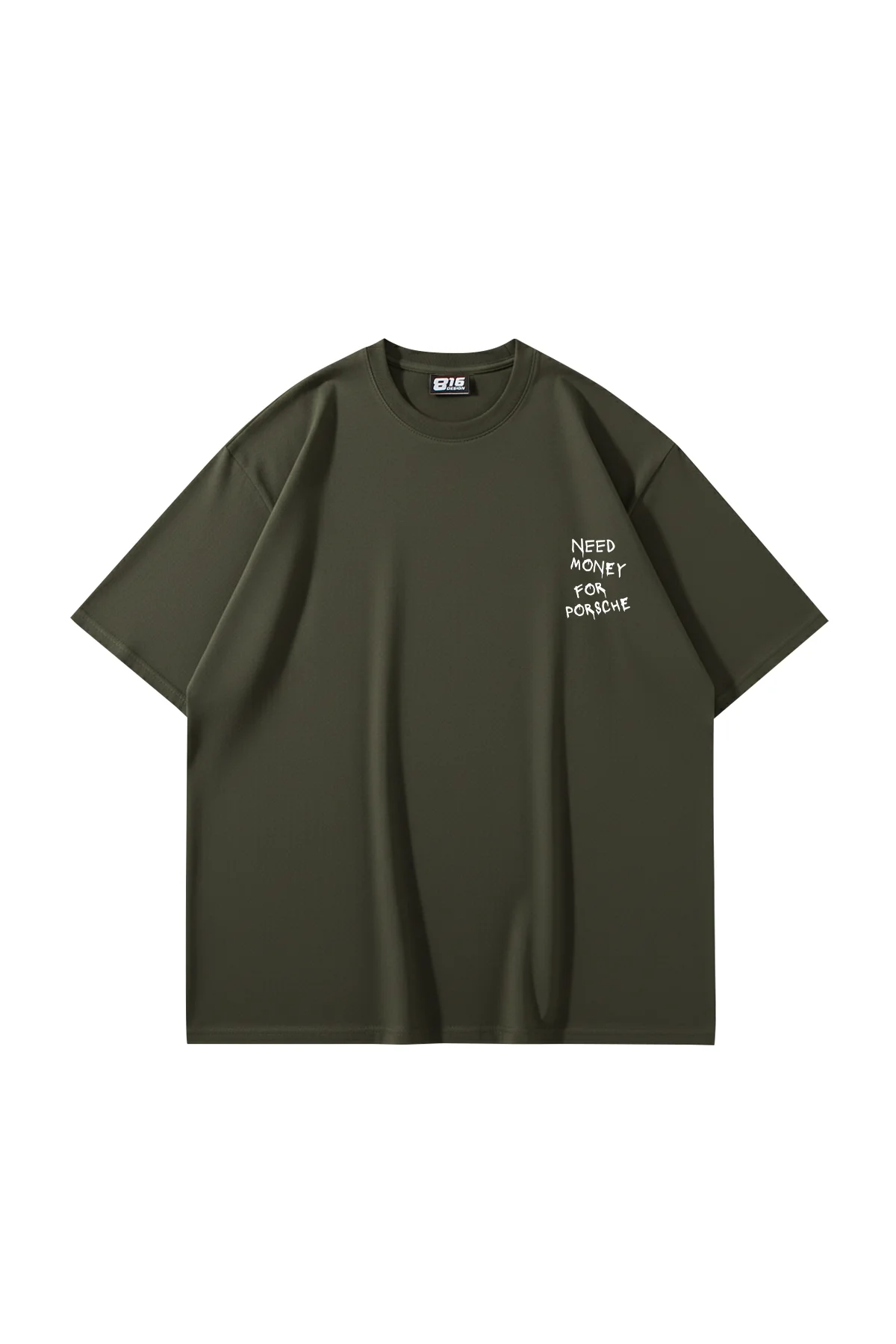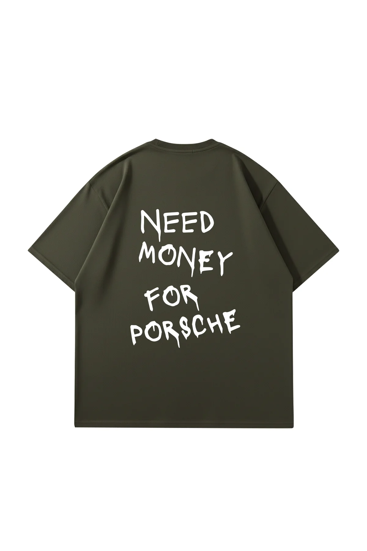 Need Money For Porsche Baskılı Oversize Unisex Haki Tshirt