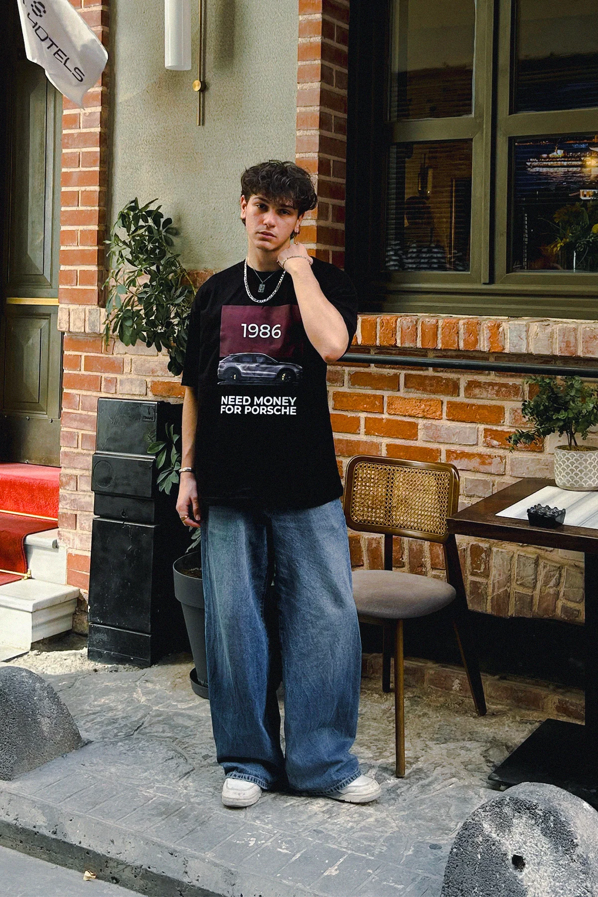 Sokak stiline asi ve özgün bir dokunuş ekleyin! Need Money For Porsche baskılı Siyah oversize unisex t-shirt, enerjik tasarımı ve rahat kesimiyle her ortamda dikkat çeker. Hem erkekler hem de kadınlar için ideal olan bu t-shirt, cesur bir tarz arayanların tercihi olacak.