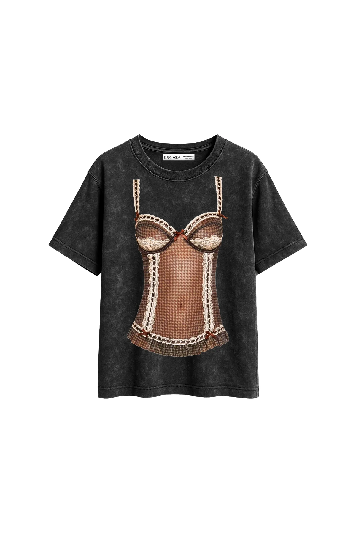 NKD Baskılı Relaxed Fit Yıkamalı Siyah Kadın Tshirt