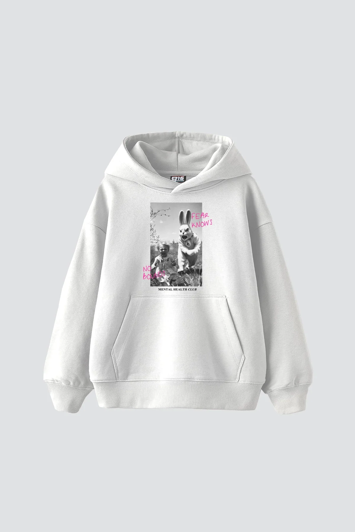 No Bounds Vintage Baskılı Oversize Unisex Beyaz Hoodie