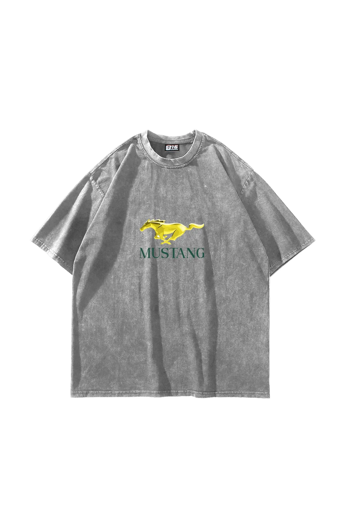 Old Mstng Baskılı Oversize Unisex Yıkamalı Beyaz T-Shirt