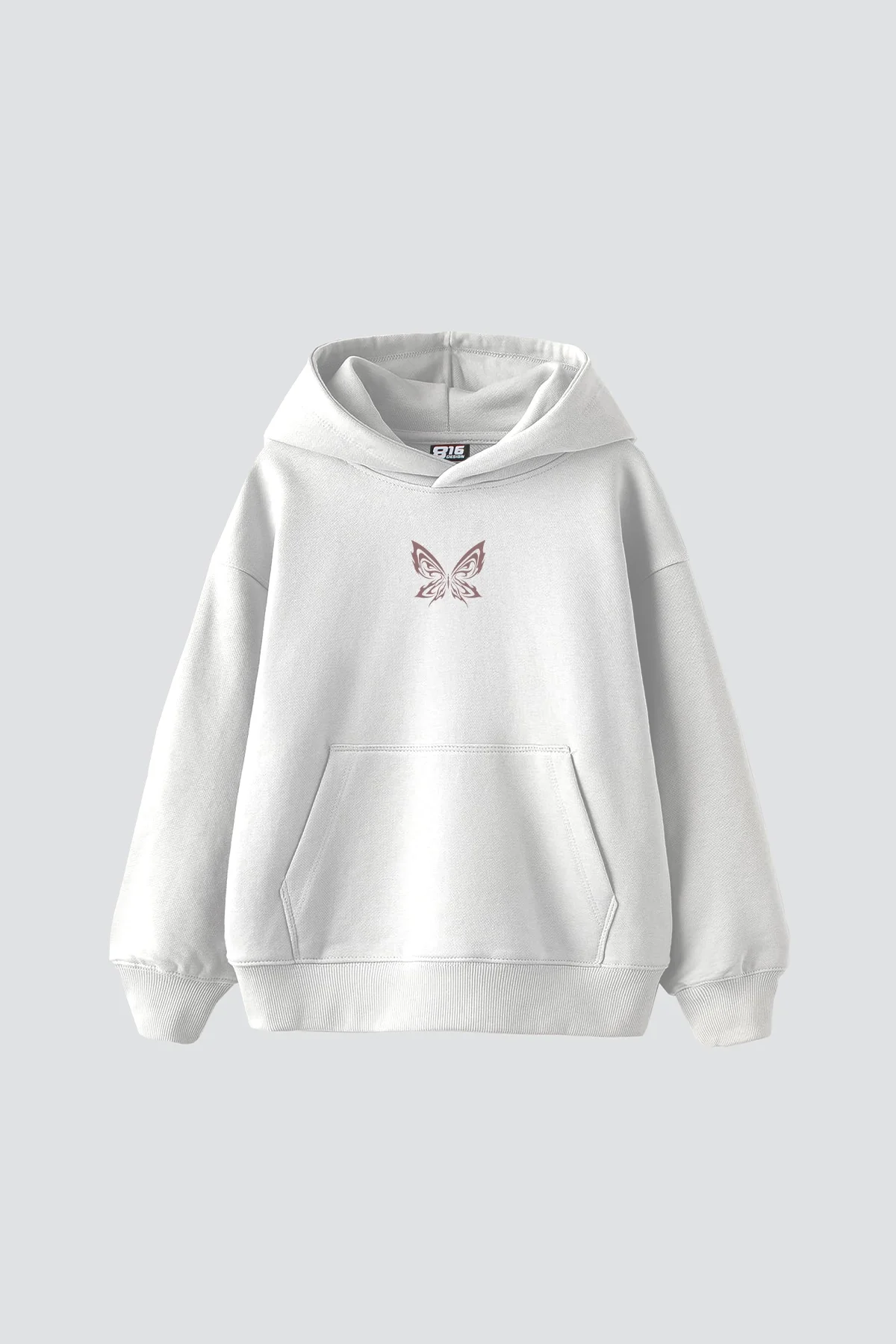 Only Love Feels Baskılı Oversize Unisex Beyaz Hoodie