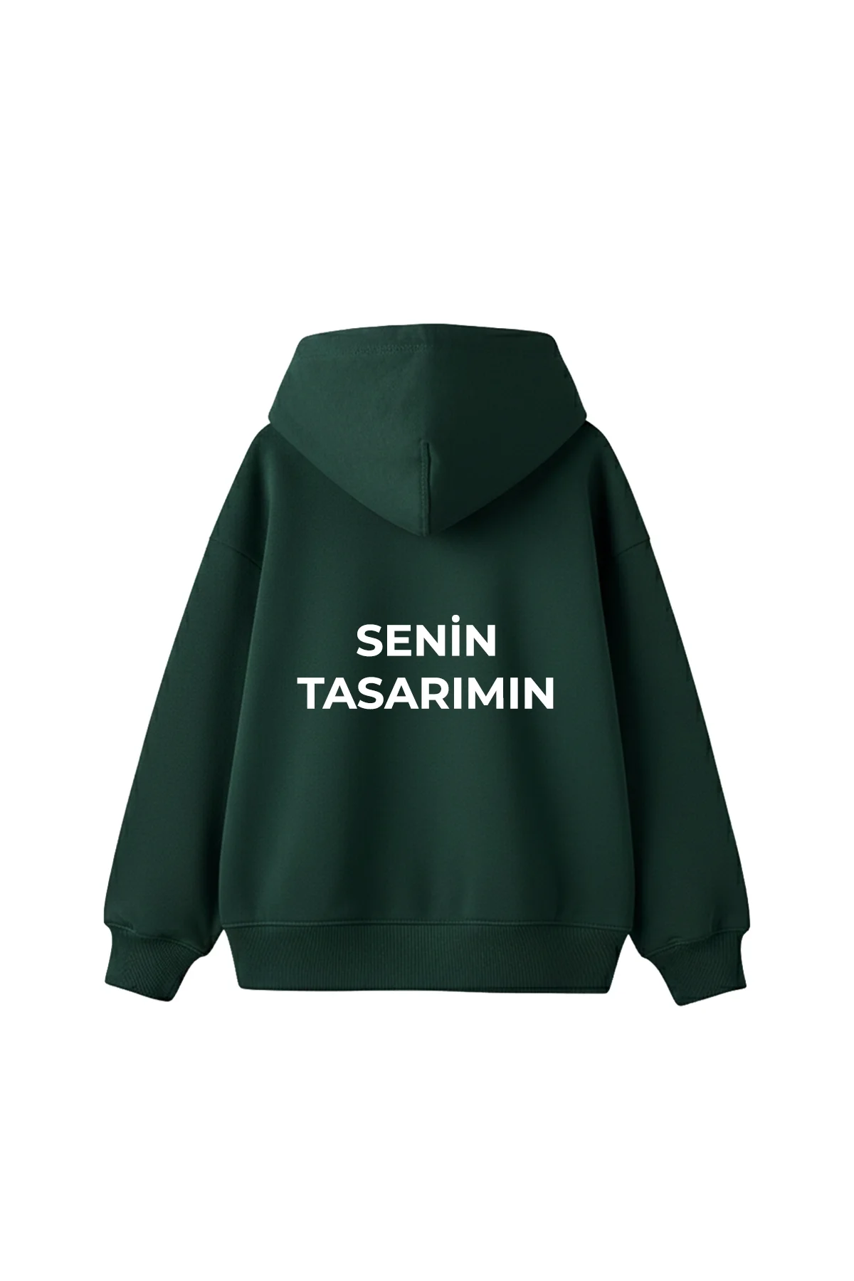 Özel Tasarım Basic Oversize Unisex Koyu Yeşil Hoodie