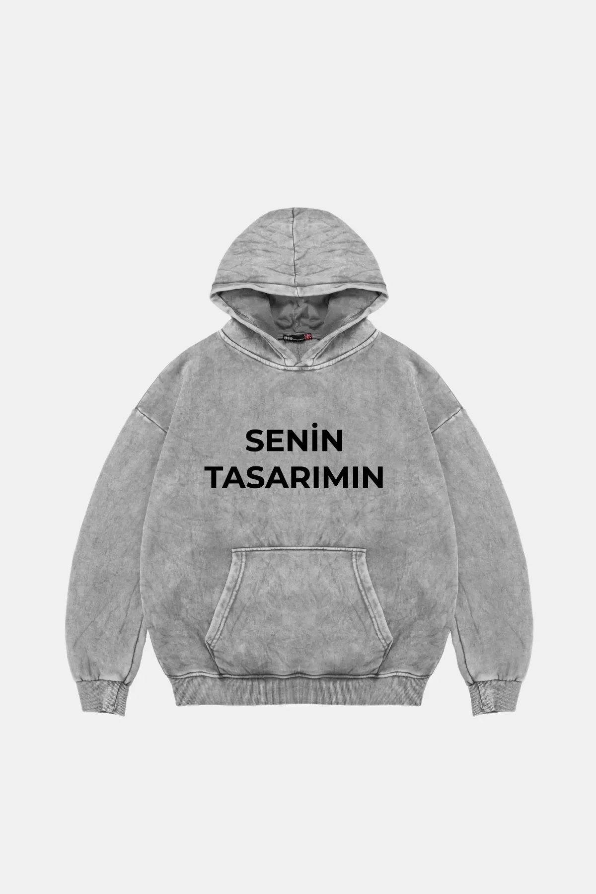 Özel Tasarım Yıkamalı Beyaz Basic Oversize Unisex Hoodie