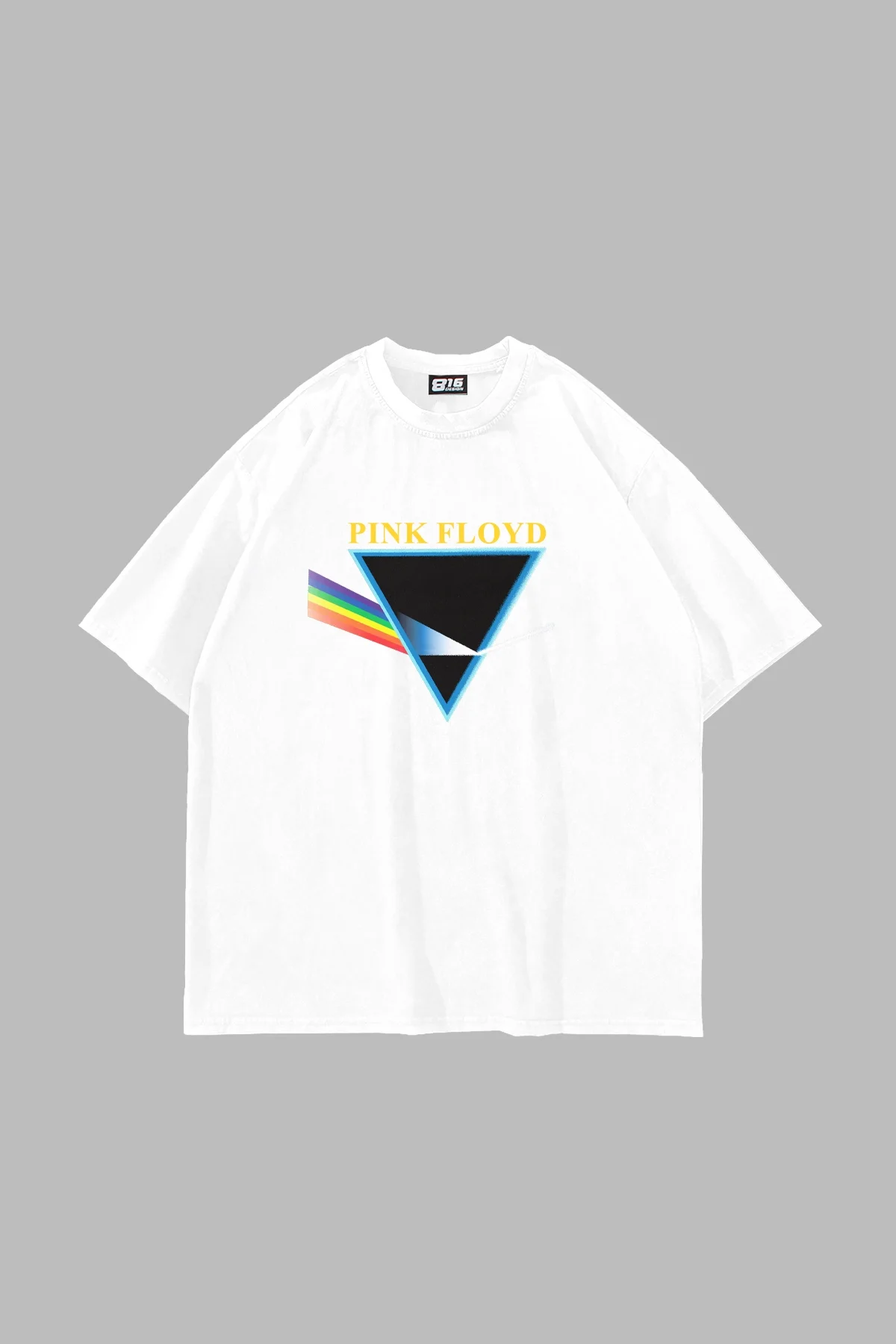Pink Floyd V2 Baskılı Oversize Unisex Beyaz Tshirt