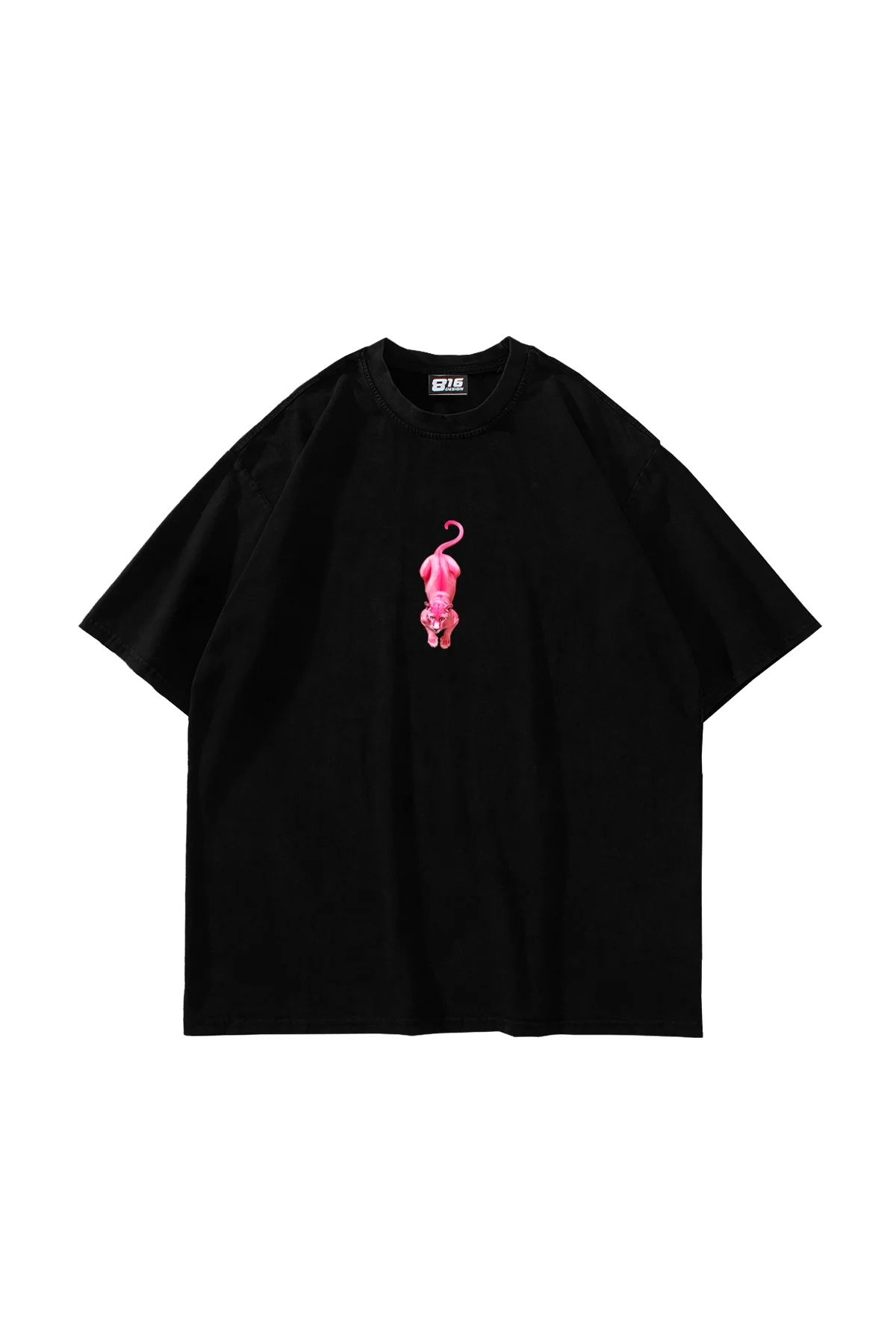 Pink Panther Baskılı Oversize Unisex Siyah T-Shirt