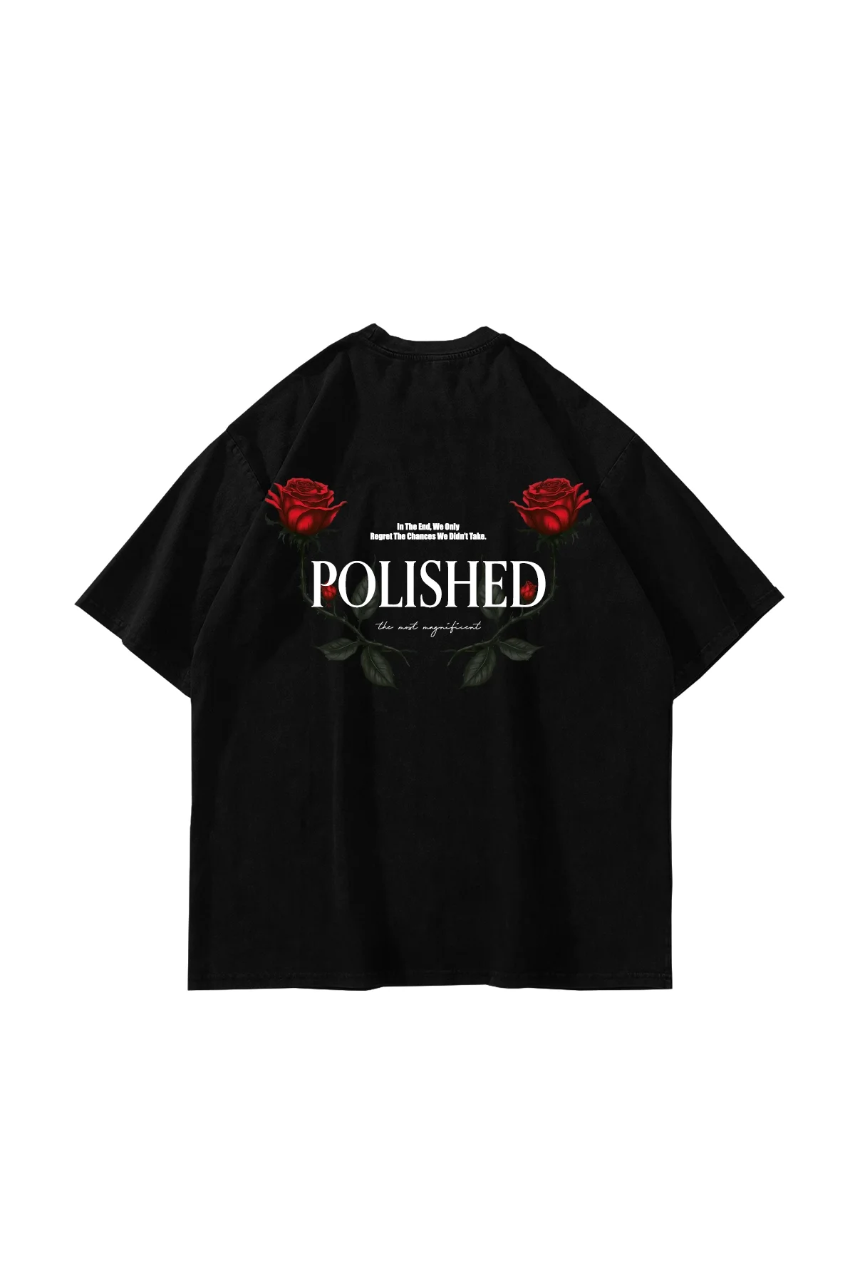 Polished Rose Baskılı Oversize Unisex Siyah T-Shirt