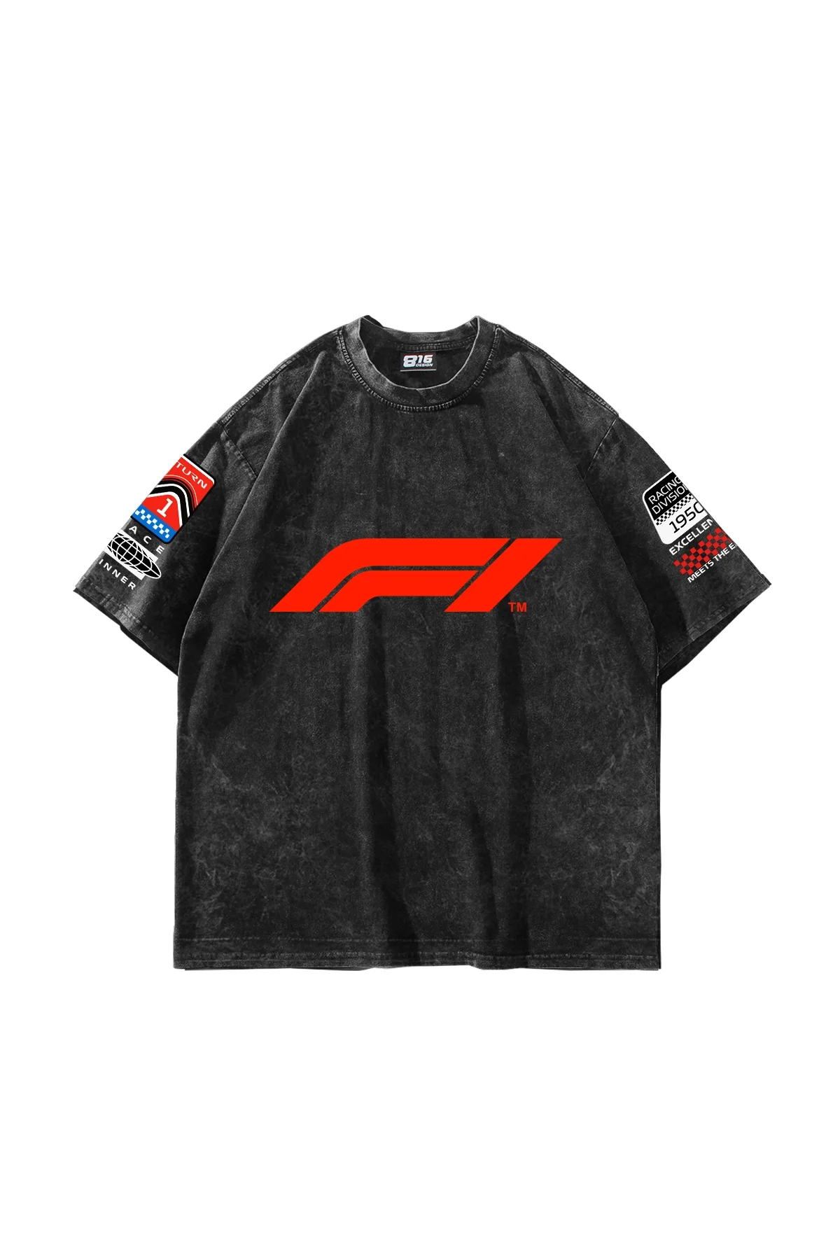 Race Baskılı Oversize Unisex Yıkamalı Siyah Tshirt