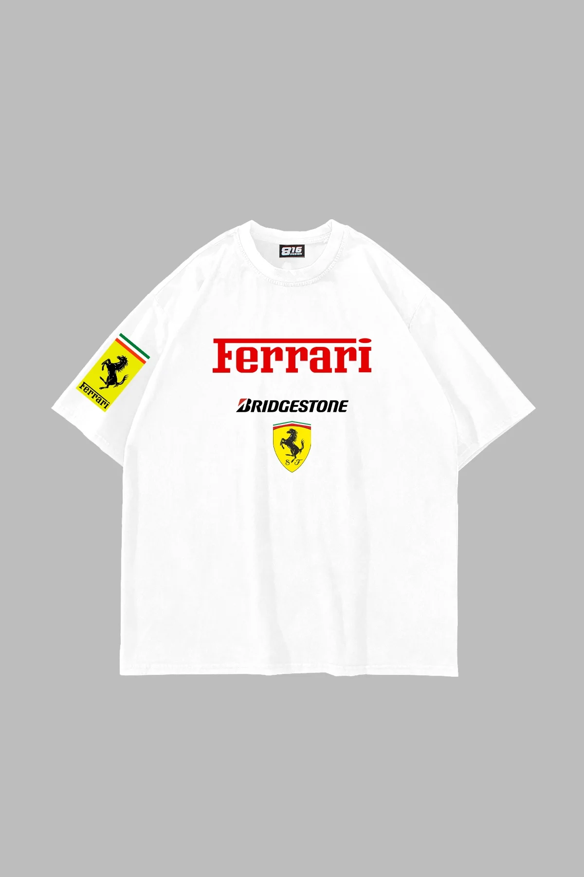 Racing F. Baskılı Oversize Unisex Beyaz Tshirt