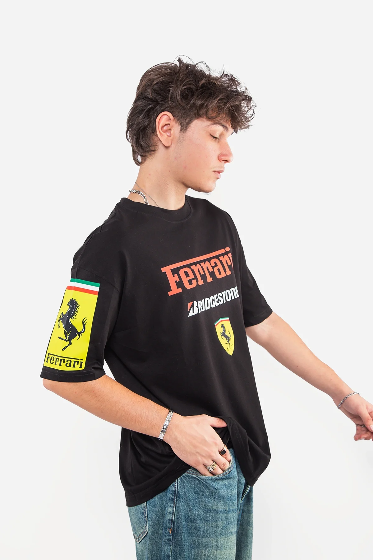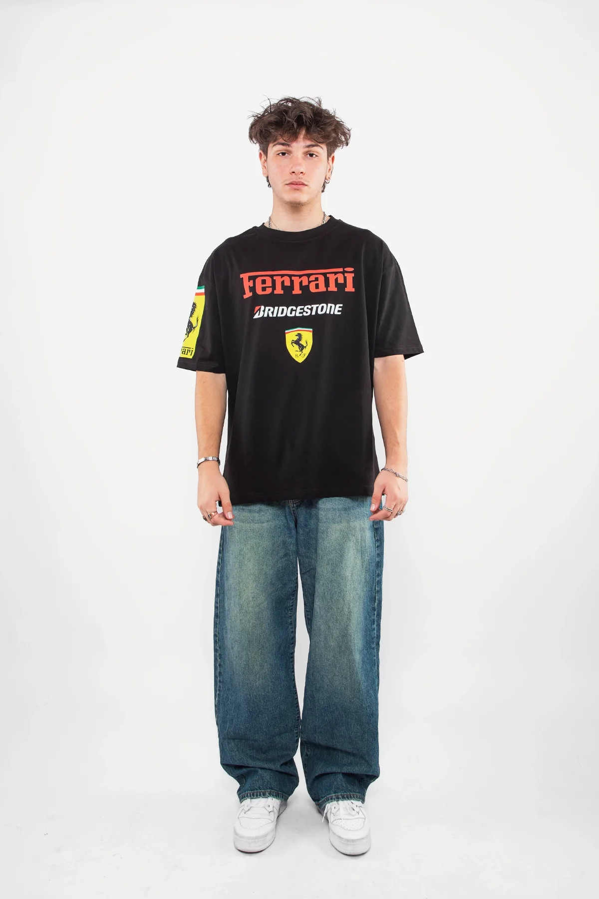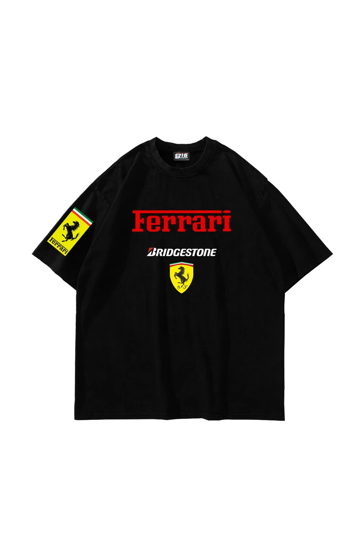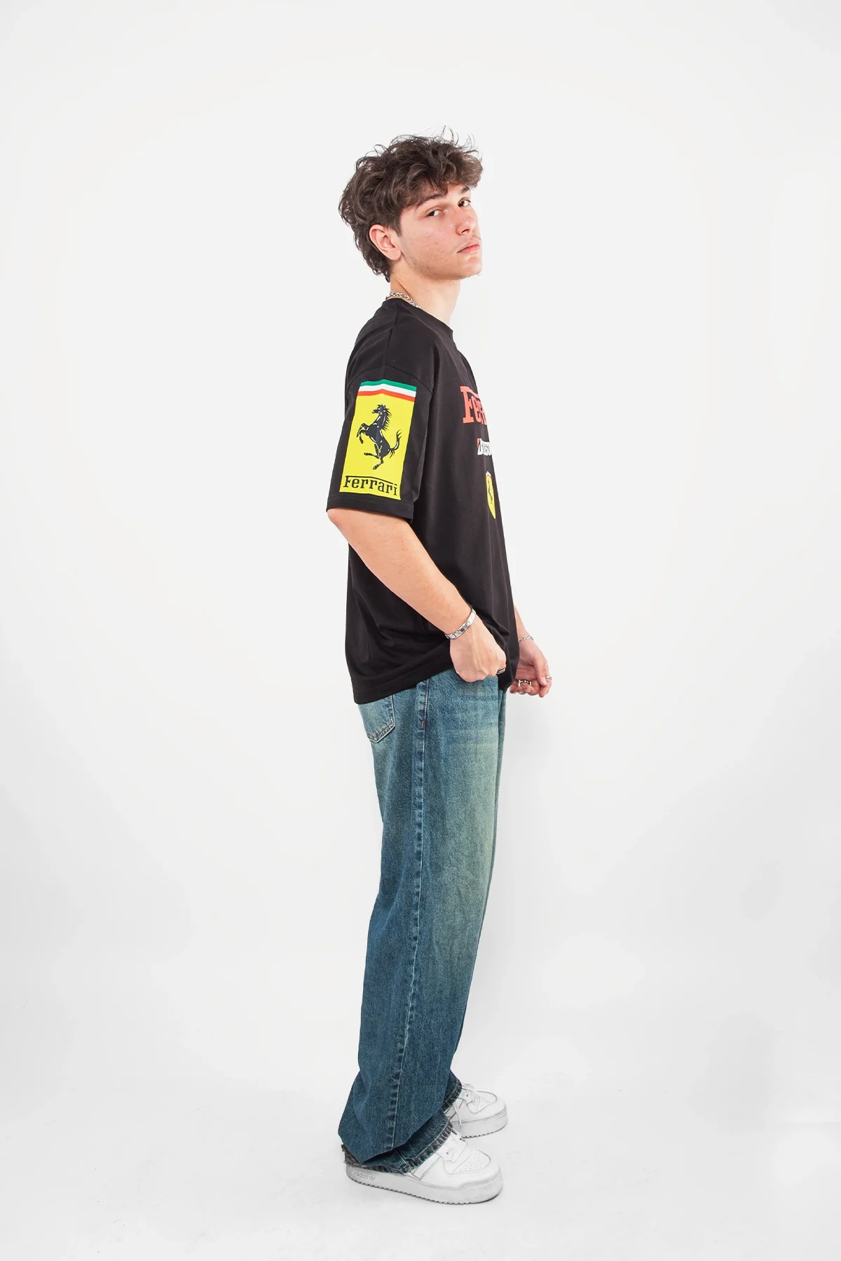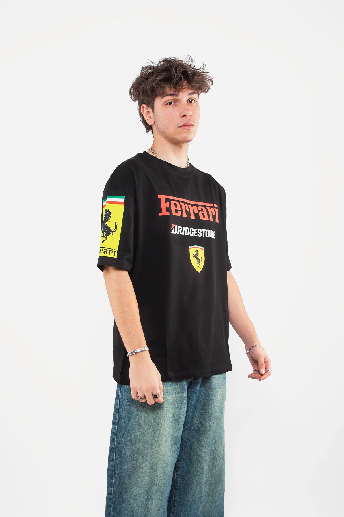 Racing F. Baskılı Oversize Unisex Siyah T-Shirt