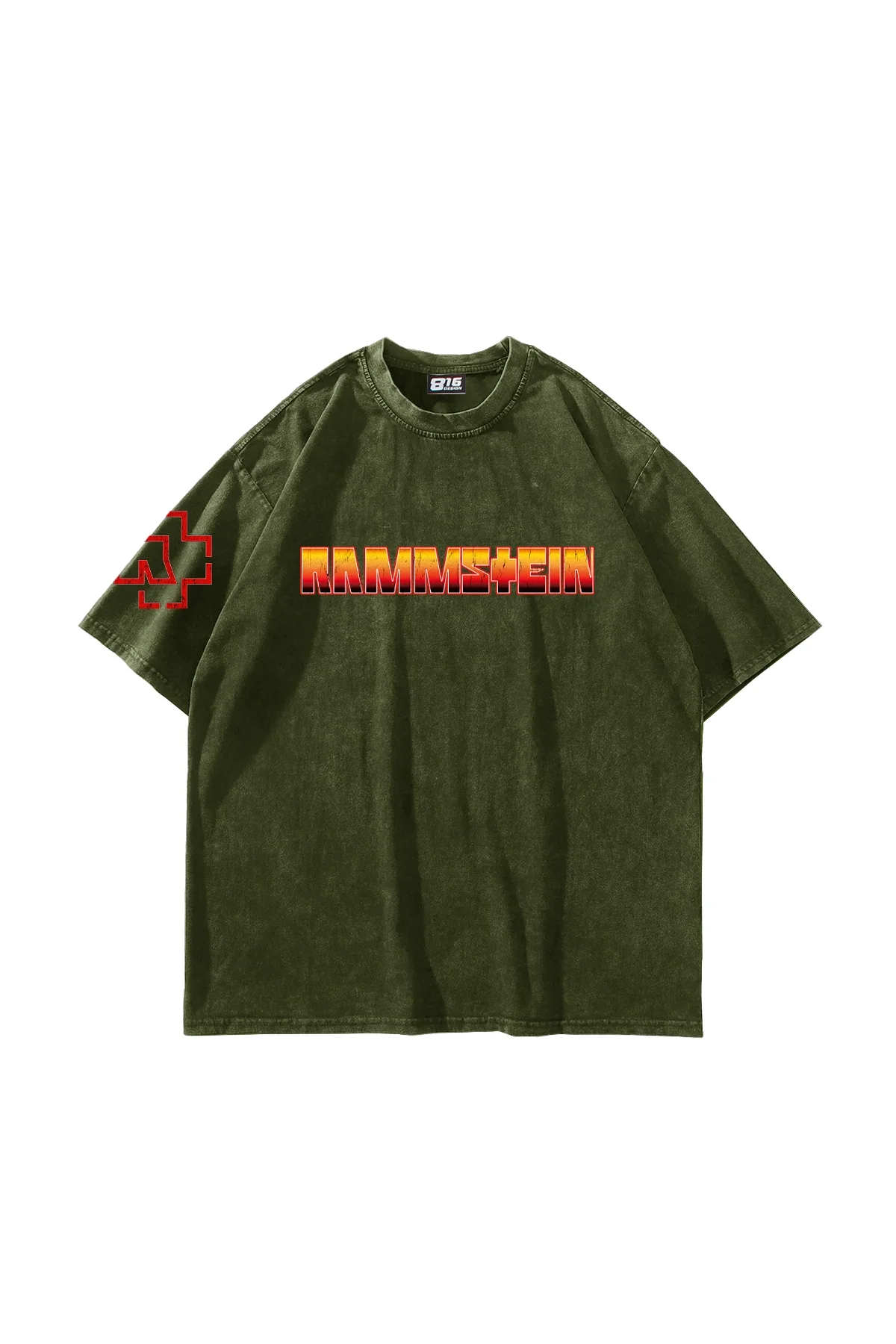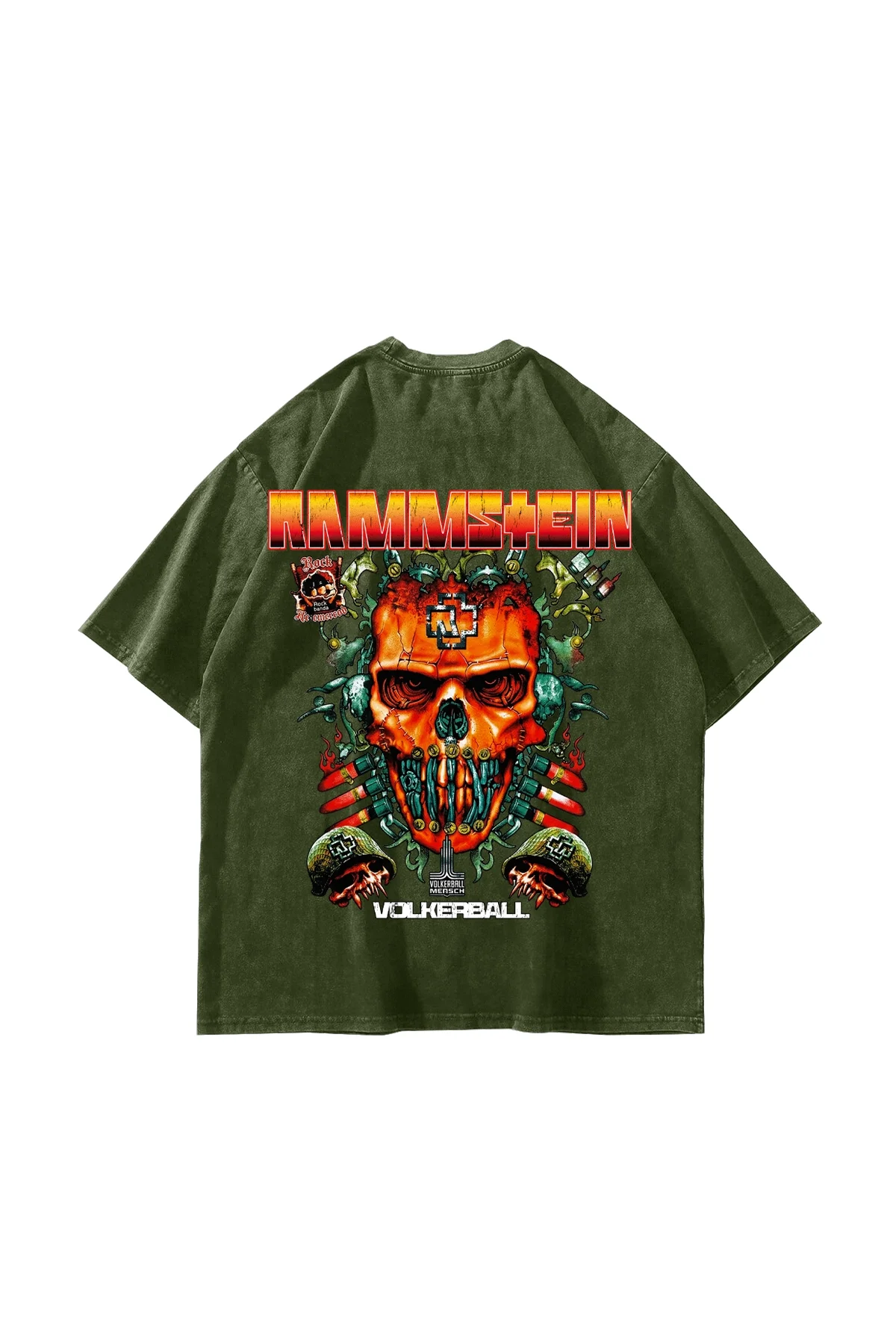 Rammstein Völkerball Baskılı Oversize Unisex Yıkamalı Yeşil Tshirt