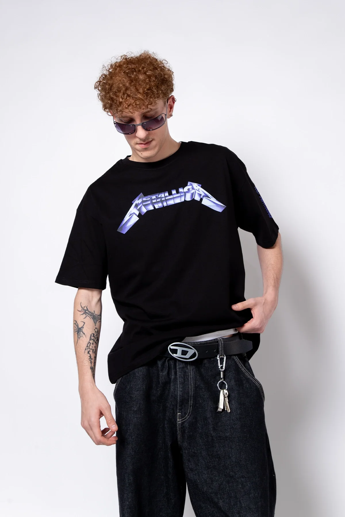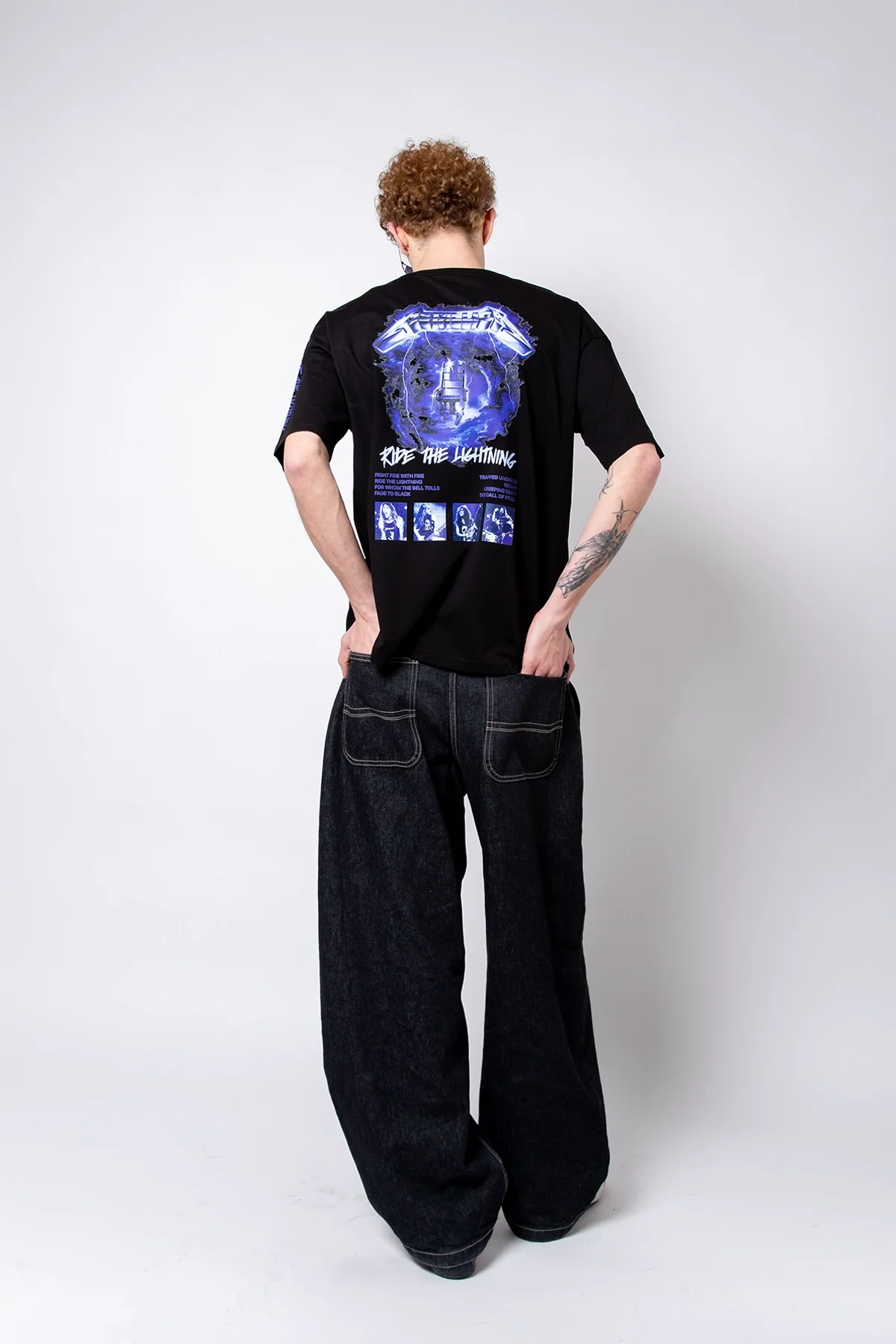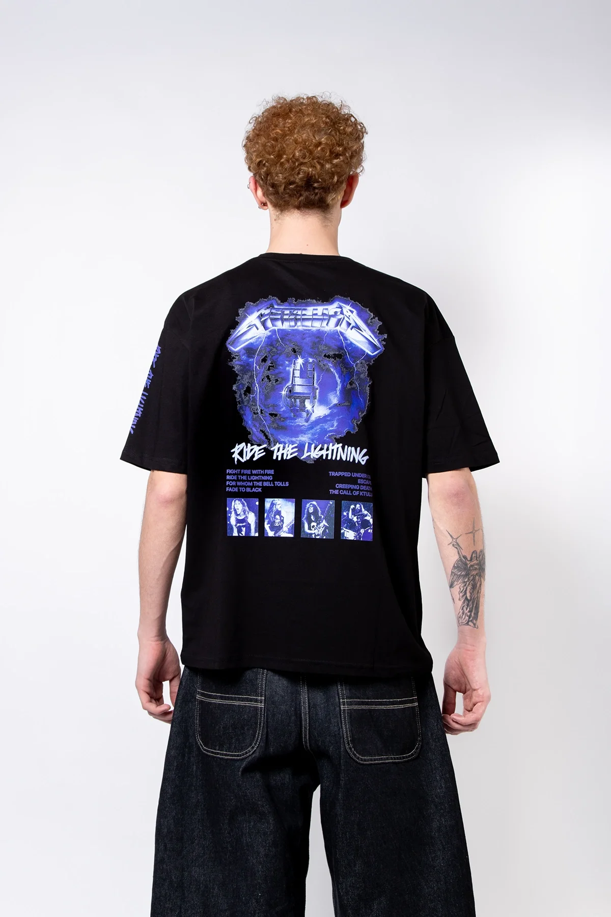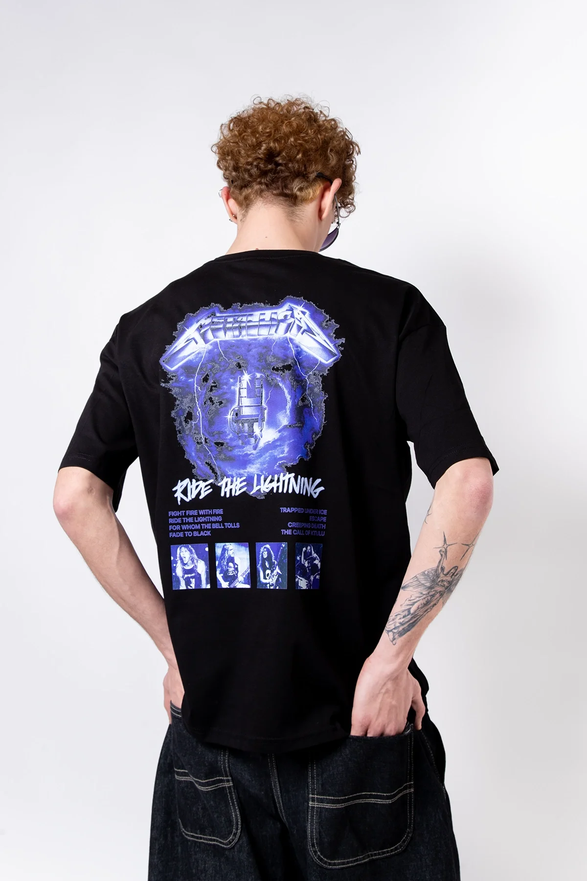 Ride The Lightning Baskılı Oversize Unisex Siyah T-Shirt