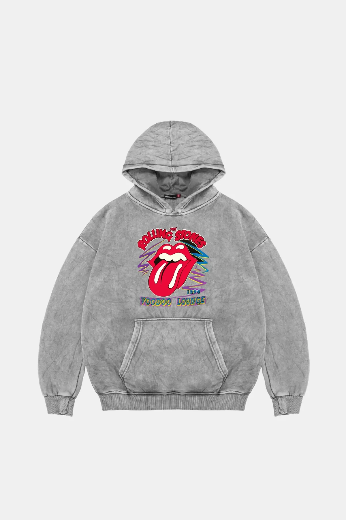 Rolling Stones Voodo Lounge Baskılı Oversize Unisex Yıkamalı Beyaz Hoodie