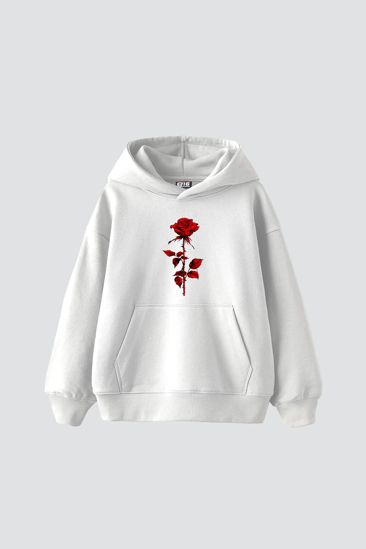 Roses Lovers Baskılı Oversize Unisex Beyaz Hoodie