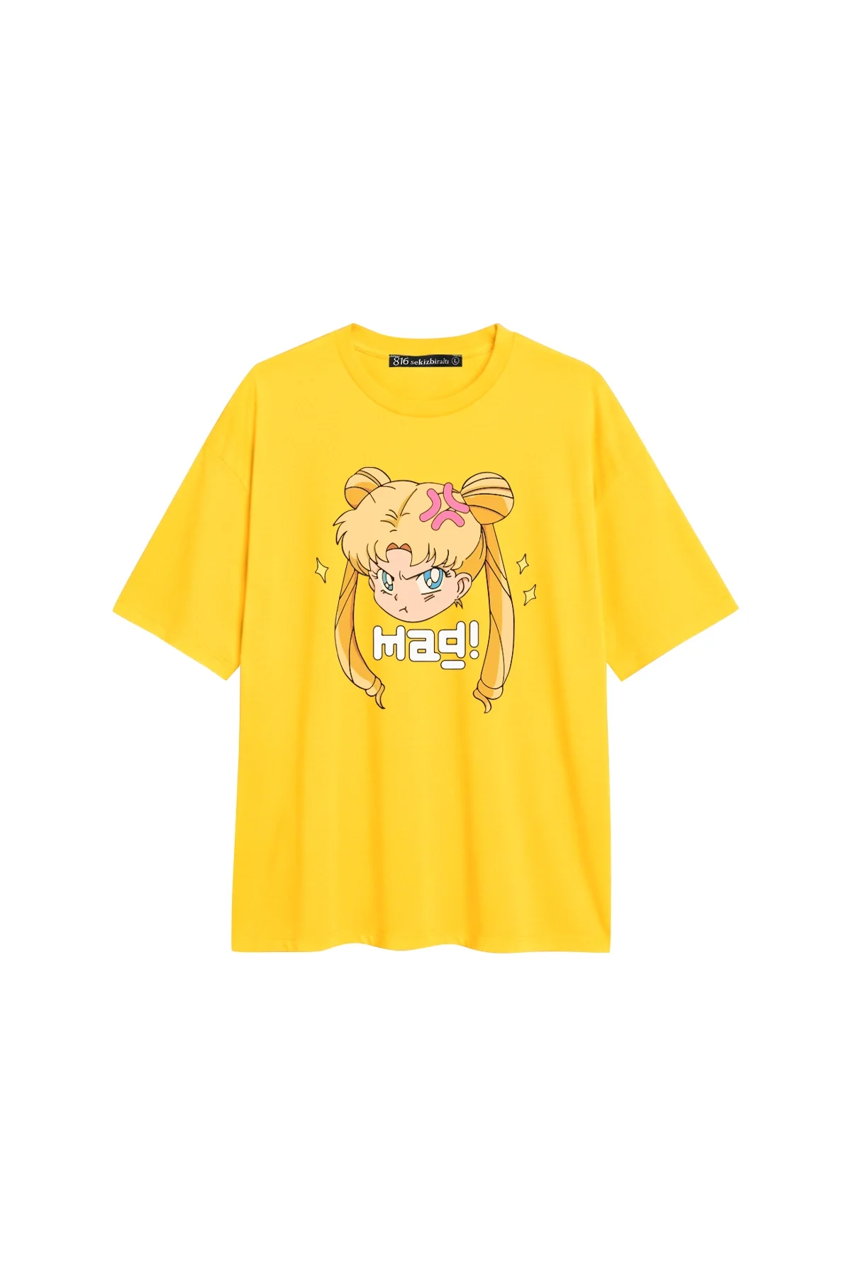 Sailor Moon baskılı rahat kalıp 30/1 unisex Sarı t-shirt, özgün tasarımı ve yüksek kaliteli kumaşıyla dikkatleri üzerine çeker. Sarı zemin üzerine işlenen baskısı, t-shirt'e modern bir hava katarken, tarzınızı da bir adım öne çıkarır.