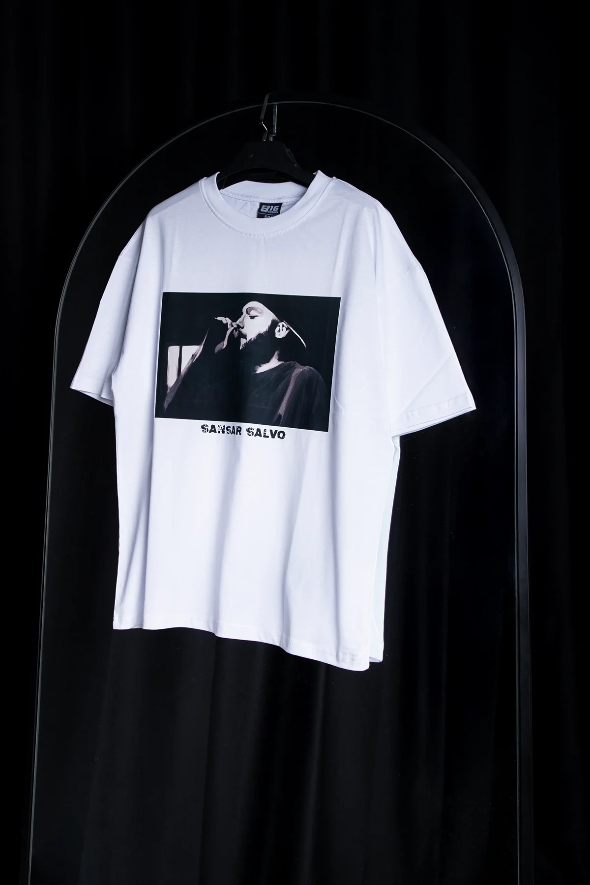 Sansar Salvo Baskılı Oversize Unisex Beyaz T-Shirt