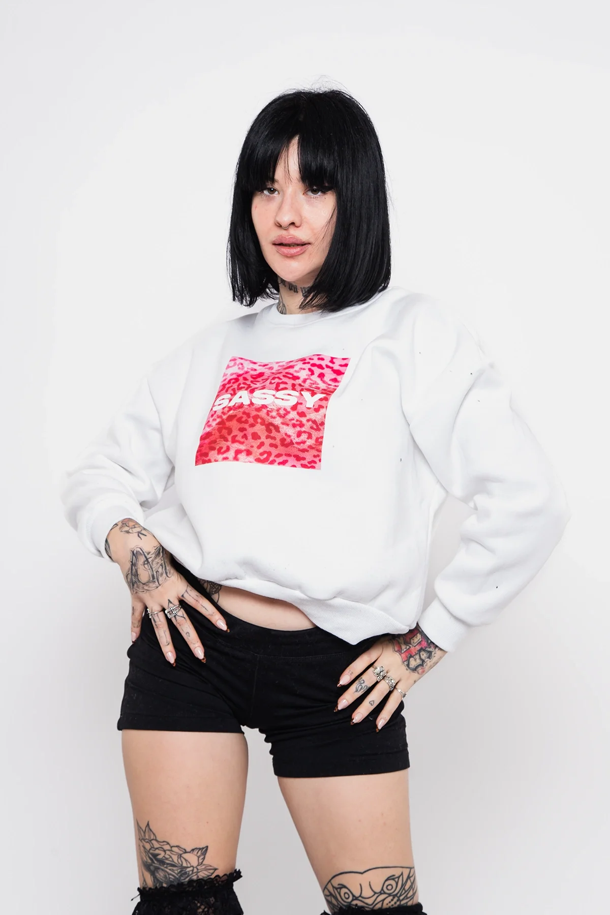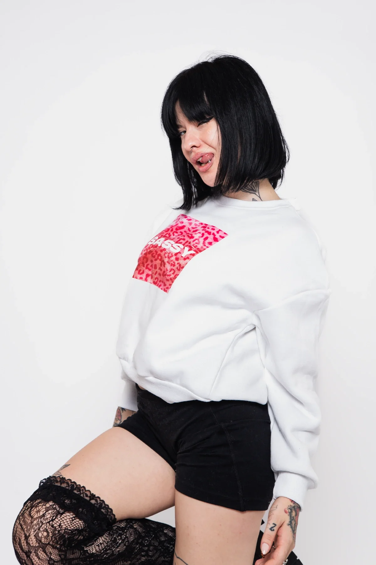 Sassy Baskılı Kapüşonsuz Relaxed Fit Kadın Beyaz Sweatshirt