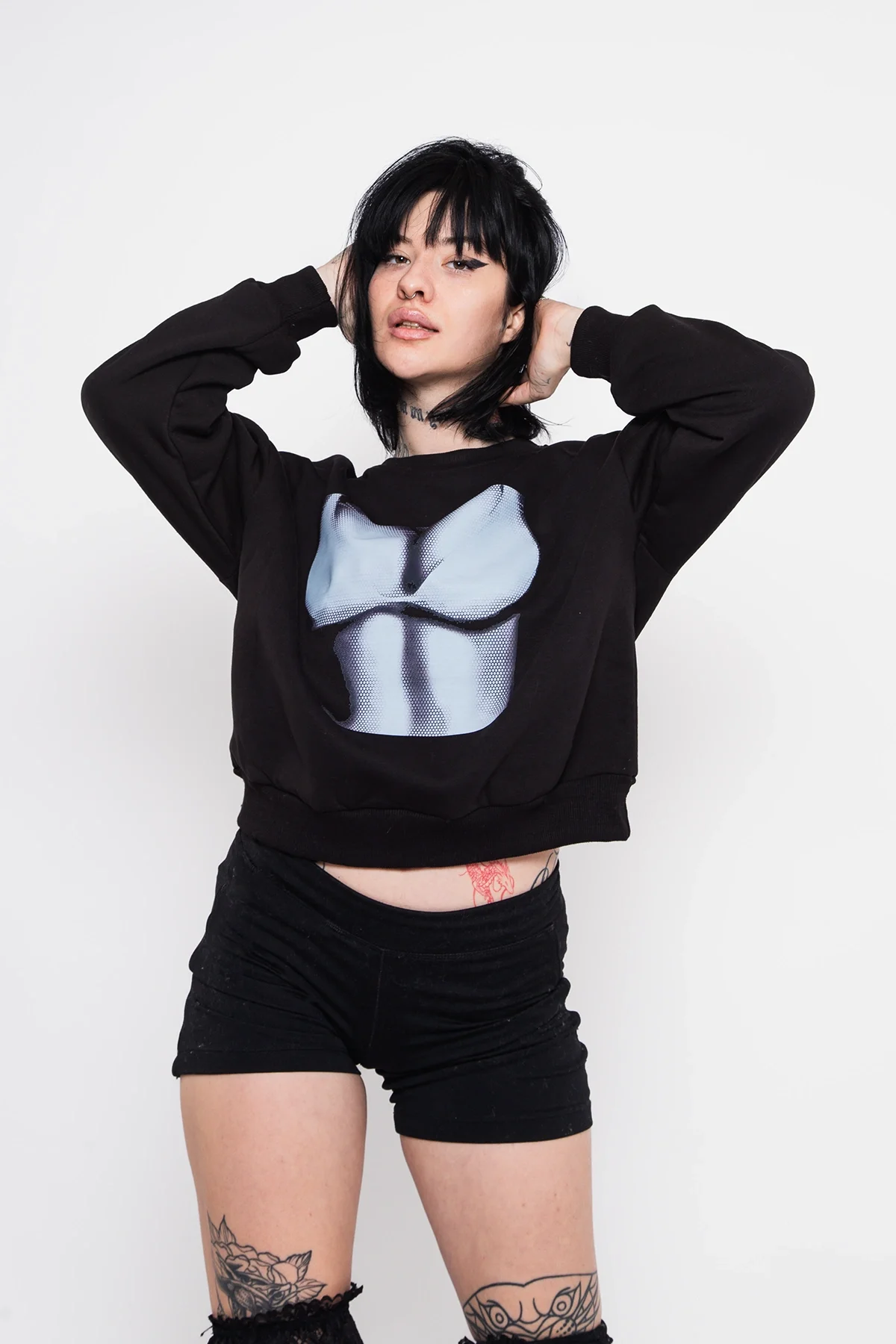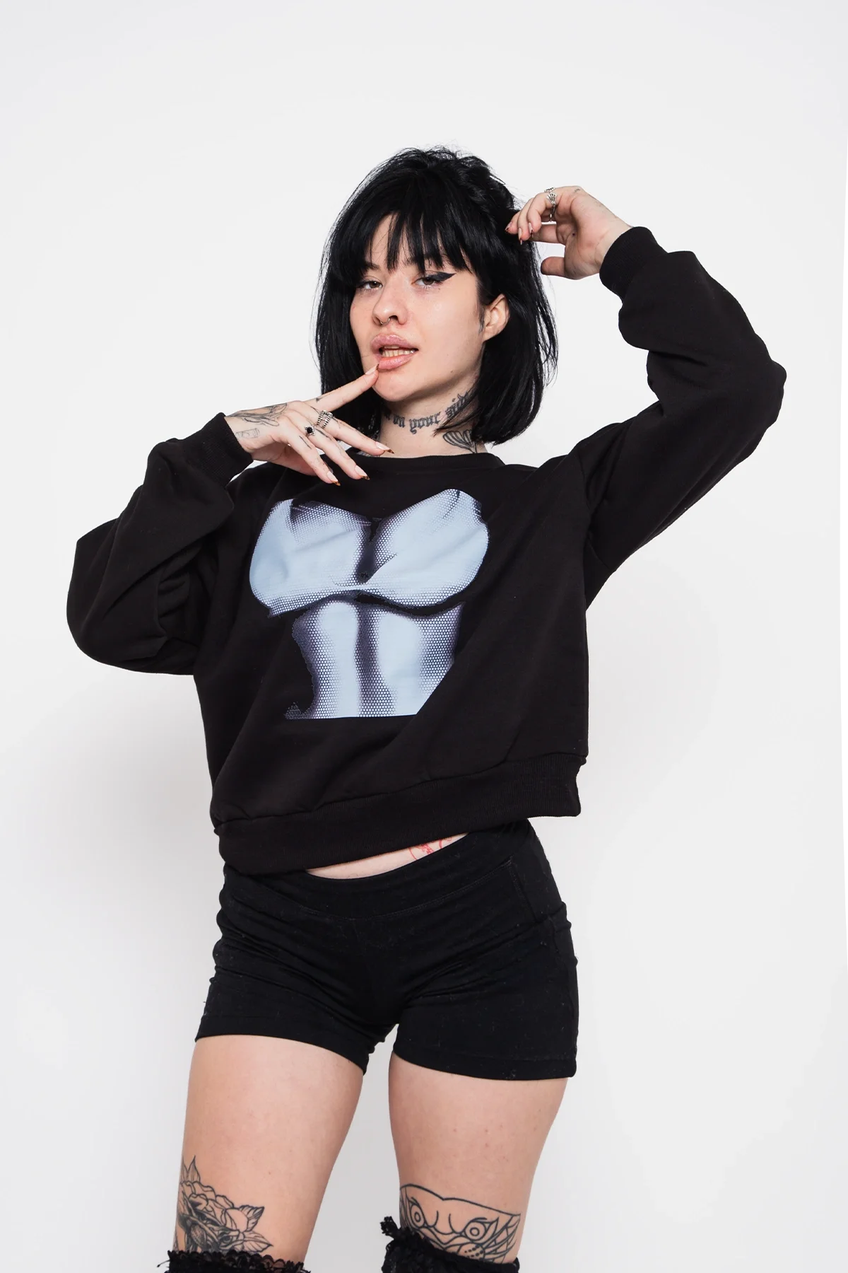 Minimalist tasarımıyla öne çıkan Silhouette Boobs baskılı bu siyah sweatshirt, sade şıklığa ince bir dokunuş katıyor. Relaxed fit kesimiyle konforlu bir kullanım sunarken, ön kısmındaki sanatsal siluet detayı ile fark yaratıyor. Hem özgün hem de modern bir stil arayan kadınlar için ideal.