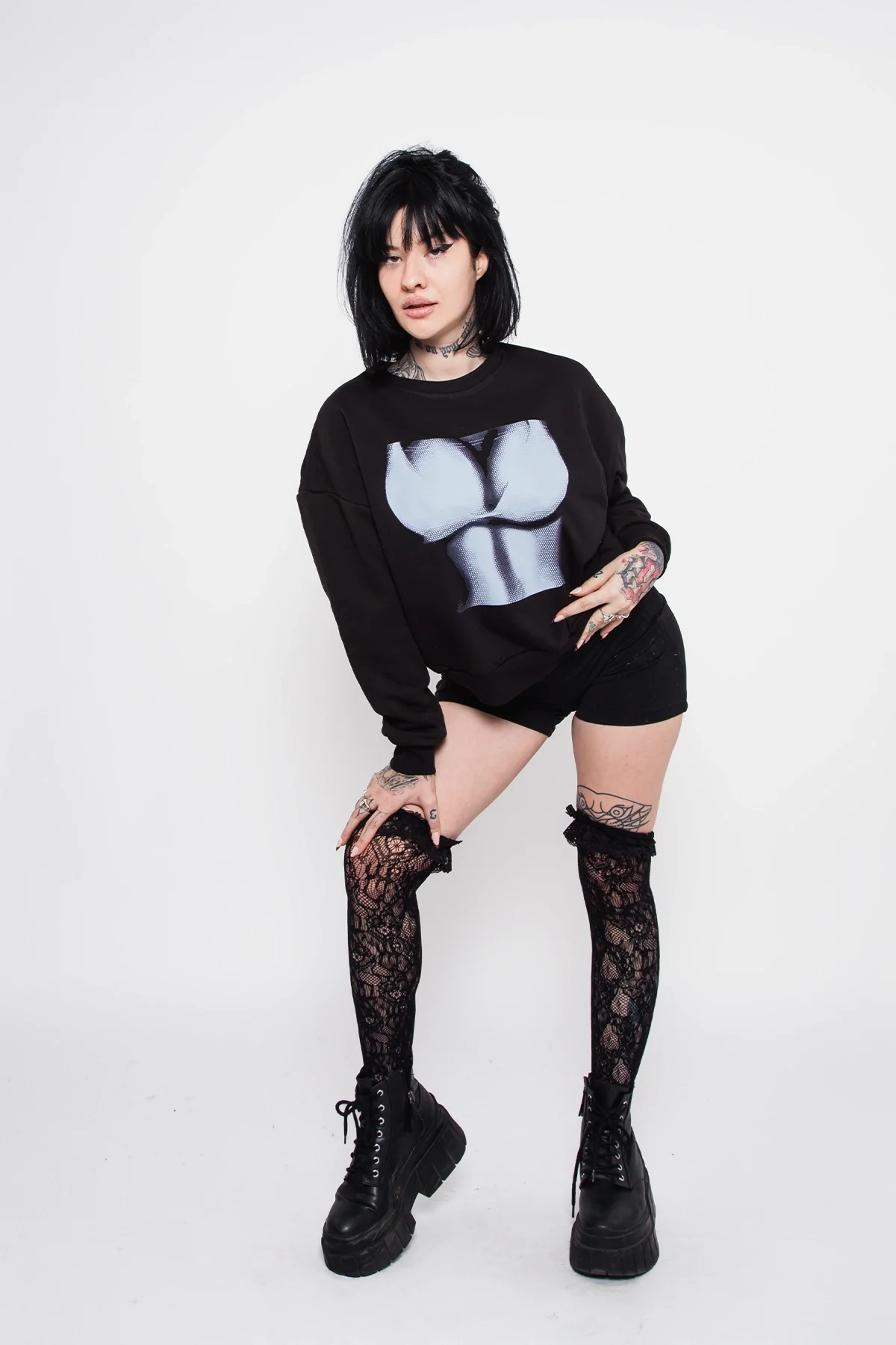 • Sanatsal baskı: Göğüs hizasında yer alan "silhouette boobs" detayı ile dikkat çeken özgün tasarım