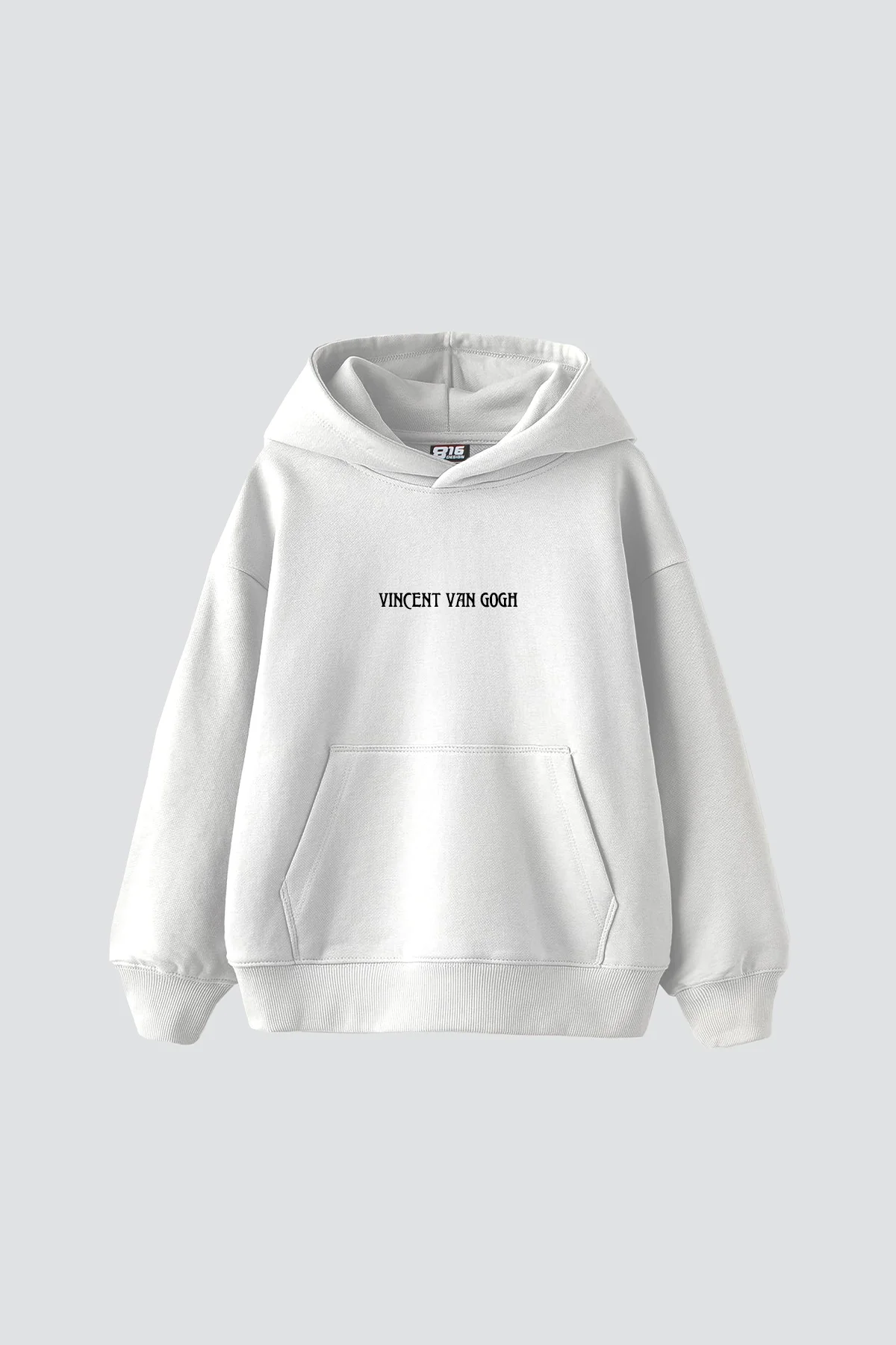 Skull of a Skeleton Baskılı Oversize Unisex Beyaz Hoodie