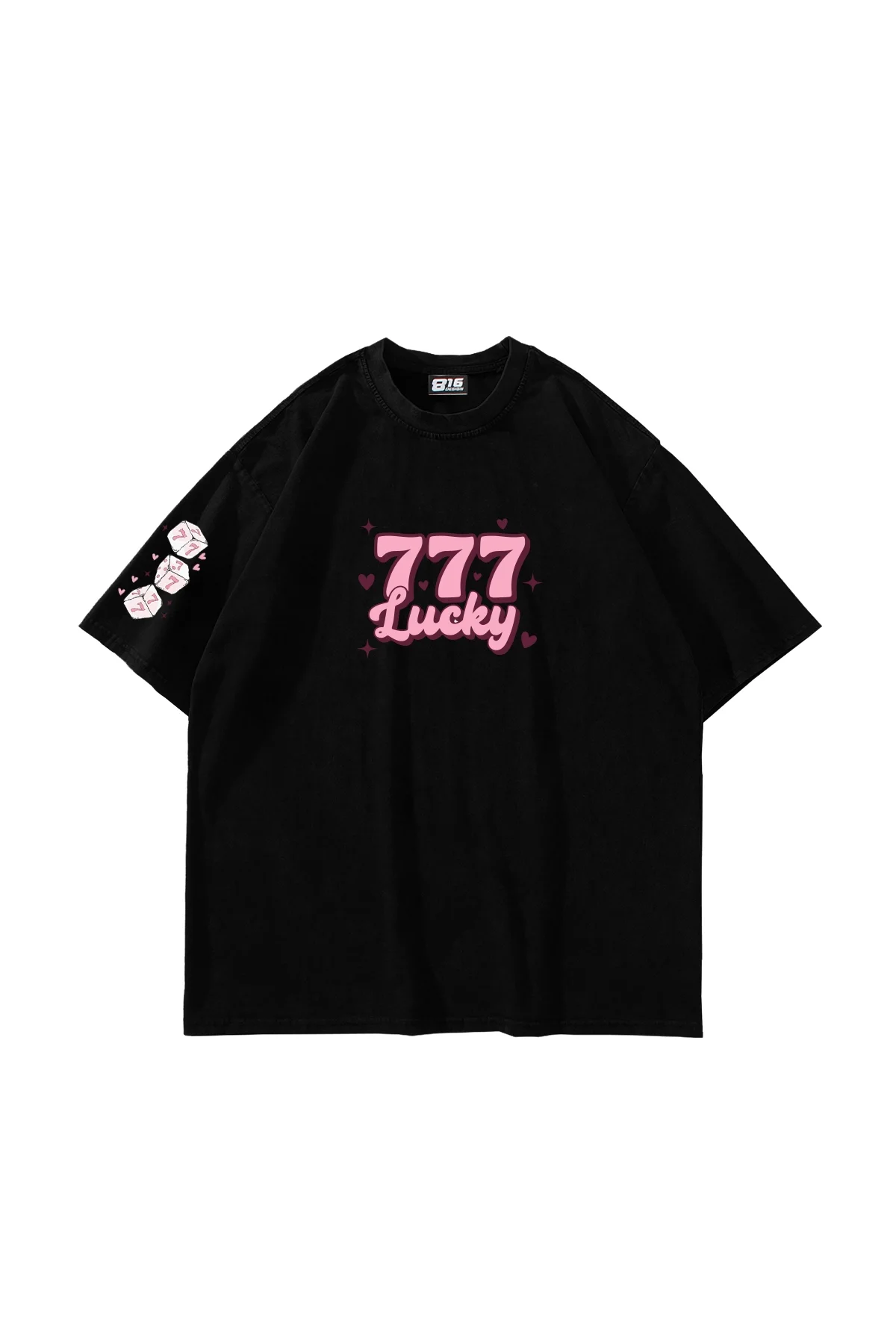 777 Lucky Baskılı Oversize Unisex Siyah Tshirt
