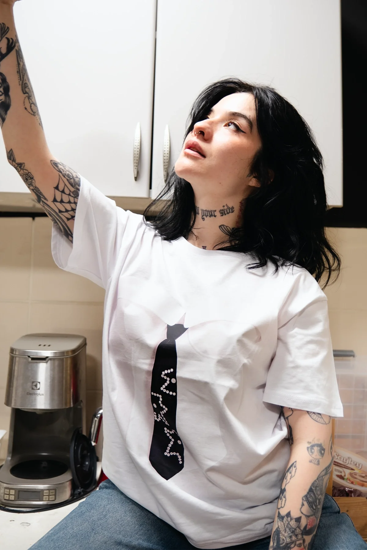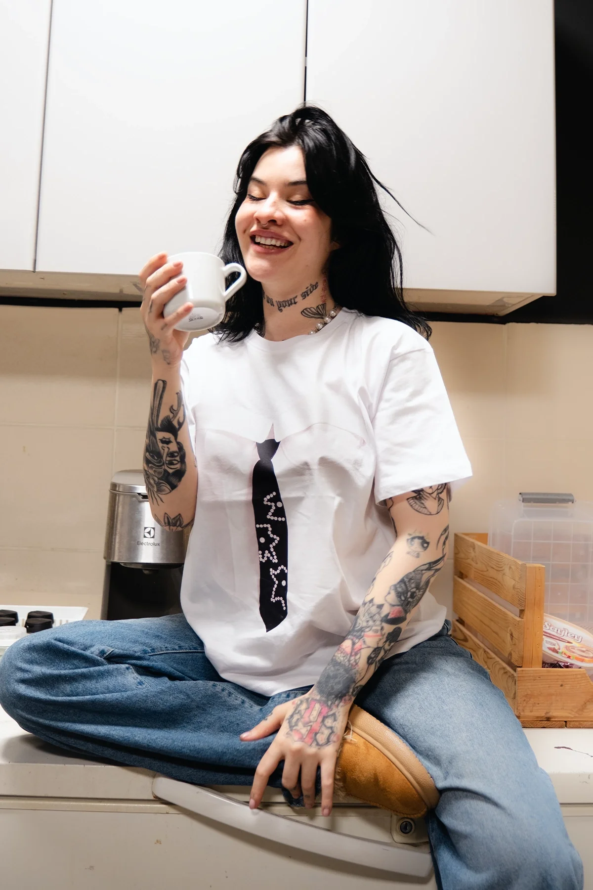 Günlük stilinize enerjik Suit ve eğlenceli bir dokunuş eklemek isteyenler için tasarlandı! Suit baskılı Beyaz kadın t-shirt, rahat kalıbı ve yumuşak pamuklu kumaşıyla gün boyu konfor sağlarken, minimal ve dikkat çekici tasarımıyla tarzınızı yansıtmanıza yardımcı olur.