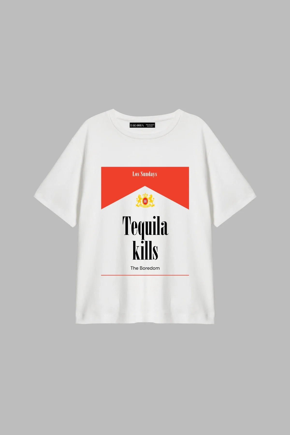 Tequila Kills Baskılı Relaxed Fit Beyaz Kadın T-Shirt